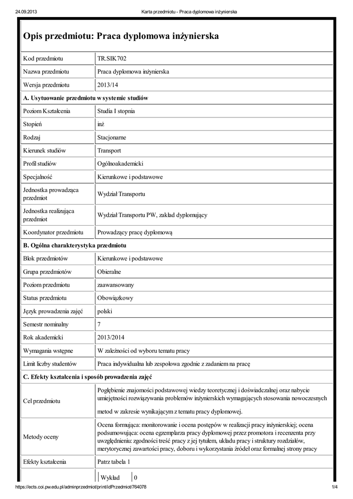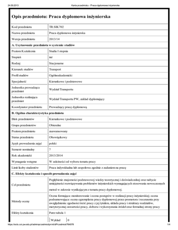 Opis przedmiotu: Praca dyplomowa inżynierska