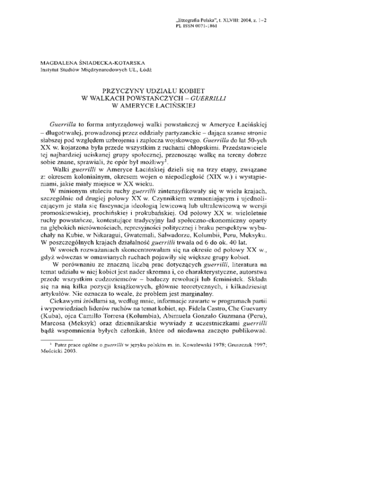 wśród nich dominowały? Czym przyciągali kobiety ideologowie guerrilli? W ja