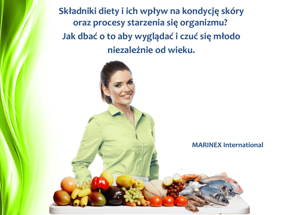 Składniki diety i ich wpływ na kondycję skóry oraz procesy starzenia się organizmu? Jak dbać o to aby wyglądać i czuć się młodo niezależnie od wieku. MARINEX International Czym jest dieta? Dieta to nie tylko sposób na pozbycie się nadmiaru kilogramów Czym jest dieta? • To nawyki żywieniowe i styl życia, dzięki którym mamy szansę zachować zdrowie, sprawność organizmu, dobry wygląd i samopoczucie. • To sposób na dostarczenie organizmowi różnego rodzaju substancji: energetycznych, budulcowych, prekursorowych, regulatorowych. Badania naukowe udowodniły, że od diety zależy nasze zdrowie i wygląd Mechanizmy działania składników diety Substancje dostarczane w pożywieniu oddziałują na nasze geny i ich ekspresję (aktywność) Dzięki temu organizm człowieka prawidłowo buduje: Żywność funkcjonalna to składnik odpowiednio zbilansowanej diety pomagający uzupełnić ją we właściwe ilości substancji budulcowych, prekursorowych i regulatorowych systemu antyoksydacyjnego i energetycznego organizmu człowieka. Skóra Składniki diety o udowodnionym w badaniach działaniu i wpływie na kondycję skóry • Skwalen • Astaksantyna • Likopen • Koenzym Q10 Skwalen • Naturalny składnik sebum (11-13%) • Unikalny dla człowieka • Wykazuje działanie ochronne i antyoksydacyjne • Po 30 roku życia ilość skwalenu w skórze spada ® La Squalana to olejek zawierający skwalan, genetycznie niezbędną substancję budulcową i regeneracyjną skóry. Skwalan ma istotny wpływ na ochronę DNA skóry, produkcję kolagenu i elastyny. Wzmacnia skuteczność działania wielu niezbędnych substancji skóry, w tym koenzym Q10, witamin A i D3. Badanie eksperckie z udziałem 30 kobiet, trwające 30 dni pokazało, że w wyniku stosowania dermokosmetyku ® La Squalana nastąpiło wybitne: wygładzenie zmarszczek, poprawa jędrności i elastyczności skóry, redukcja cieni pod oczami i poprawa nawilżenia skóry. Skwalen Grupa: kobiety w wieku 50 – 60 lat Dawka: 13,5 g dziennie skwalenu Okres: 90 dni Rezultaty przyjmowania skwalenu w obu grupach były znakomite. W porównaniu do stanu wyjściowego w obu grupach wykazano wzrost ilości kolagenu w skórze średnio o 130%, zmniejszenie ilości zaczerwień skóry o 36%, oraz kilkuprocentowy wzrost natężenia pigmentacji skóry. 130% High-dose squalene ingestion increases type I procollagen and decreases ultraviolet-induced DNA damage in human skin in vivo but is associated with transient adverse effects.Cho S, Choi CW, Lee DH, Won CH, Kim SM, Lee S, Lee MJ, Chung JH. Clin Exp Dermatol. 2009 Jun;34(4):5008. Epub 2009 Apr 14. Astaksantyna • Karotenoid obecny w czerwonych algach morskich • Jeden z najsilniejszych naturalnych antyoksydantów • Ma silne powinowactwo do komórek skóry Astaksantyna Grupa: kobiety w wieku 20 - 60 lat Dawka: 6 mg dziennie Okres: 6 tygodni Poprawa elastyczności skóry i zmniejszenie przezskórnej utraty wody (TEWL) Cosmetic benefits of astaxanthin on humans subjects. Tominaga K, Hongo N, Karato M, Yamashita E. Acta Biochim Pol. 2012;59(1):43-7. Likopen • Karotenoid obecny w pomidorach i przetworach pomidorowych • Silny naturalny antyoksydant • Ma powinowactwo do komórek skóry Likopen Grupa: kobiety w wieku 21 – 47 lat Dawka: 16 mg dziennie likopenu Okres: 12 tygodni Po 12 tygodniach stosowania nastąpiło: zwiększenie odporności skóry na działanie UV ( MED) aż o: 17% zmniejszenie aktywności enzymów degradujących kolagen MMP-1 pod wpływem UV o: 40% Tomato paste rich in lycopene protects against cutaneous photodamage in humans in vivo. Rizwan M, Rodriguez-Blanco I, Harbottle A, Birch-Machin MA, Watson RE, Rhodes LE.Tomato Br J Dermatol. 2010 Sep 21.. Rizwan M, Rodriguez-Blanco I, Harbottle A, Birch-Machin MA, Watson RE, Rhodes LE.Tomato paste rich in lycopene protects against cutaneous photodamage in humans in vivo. Br J Dermatol. 2010 Sep 21.. Koenzym Q10 • Element budulcowy systemu energetycznego komórki • Naturalny antyoksydant • Wraz z wiekiem spada zawartość Q10 w komórkach Koenzym Q10 Grupa: kobiety, średnia wieku 43 lat Dawka: 60 mg dziennie koenzymu Q10 Okres: 12 tygodni Zmniejszenie obszaru i objętości zmarszczek twarzy 33% Yutaka Ashida, Shoko Kuwazuru, Masaya Nakashima , Kazuo Watabe Effect of Coenzyme Q10 as a Supplement on Wrinkle Reduction FOOD Style 21 2004.6(Vo8.,No.6). 40% Stosując La®Squalanę – olejek młodości dostarczamy skwalanu naturalnej substancji budulcowej skóry. Niedobory astaksantyny, likopenu i koenzymu Q10 dostarczymy do organizmu stosując żywność funkcyjną taką jak NucleVital®Q10COMPLEX Jak pokazują badania możemy dostarczyć tych substancji dla organizmu aby mógł on spowolnić procesy starzenia. Czy rzeczywiście można spowolnić ten proces ? Pierwsze tak kompleksowe badanie AntiAging przeprowadzone u ludzi z zastosowaniem wieloskładnikowego „nutraceutyku” NucleVital®Q10COMPLEX Zespół naukowy • prof. dr hab. n.med. Janusz Szemraj Zakład Biochemii Medycznej Uniwersytetu Medycznego w Łodzi • prof. dr hab. biol. Grzegorz Bartosz Katedra Biofizyki Molekularnej Uniwersytetu Łódzkiego • dr n. med. Małgorzata Szałapska Lekarz nadzorujący • Marinex International Sp. z o.o. Fundator grantu naukowego Badanie uzyskało akceptacje Komisji Bioetyki Uniwersytetu Medycznego w Łodzi. Uchwała Nr RNN/84/11/KE z 12 lipca 2011 Przebieg badania Uczestniczki: 66 kobiet w wieku 35-55 lat Washout: 4 tygodnie Okres suplementacji: 12 tygodni Dawkowanie: 6 kapsułek NucleVital®Q10COMPLEX dziennie Dzienna dawka substancji zawartych w 6 kapsułkach preparatu NucleVital®Q10COMPLEX Wpływ preparatu NucleVital®Q10COMPLEX na kondycję organizmu – wyniki samooceny uczestniczek Uczestniczki badania zaobserwowały spektakularne zmiany kondycji swojego organizmu, takie jak poprawa wydolności, samopoczucia czy wyglądu. Wpływ preparatu NucleVital®Q10COMPLEX na kondycję organizmu Jednoczesne działanie tych 
