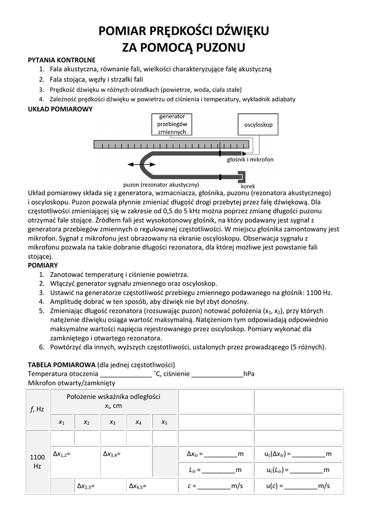 POMIAR PRĘDKOŚCI DŹWIĘKU ZA POMOCĄ PUZONU