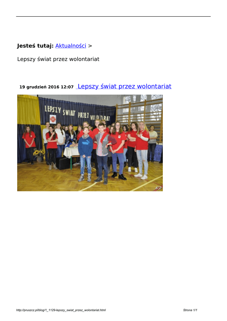 Jesteś tutaj: Aktualności > Lepszy świat przez wolontariat 19 grudzień 2016 12:07 Lepszy świat przez wolontariat http://pruszcz.pl/blog/1_1129-lepszy_swiat_przez_wolontariat.html Powered by TCPDF (www.tcpdf.org) Strona 1/1