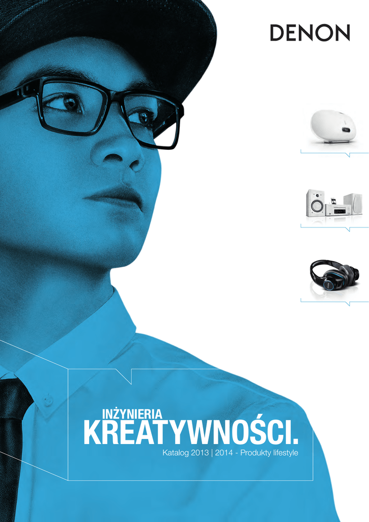 INŻYNIERIA KREATYWNOŚCI. Katalog 2013 | 2014 - Produkty lifestyle Inżynieria kreatywności. Kreatywność to wynajdowanie, komponowanie, to konieczność. Polega na łączeniu elementów, na marzeniu, na wymyślaniu tego, co wcześniej było nie do pomyślenia. To emocje i niespodzianki. Jednak aby skorzystać z tych rewolucyjnych pomysłów, trzeba ujarzmić kreatywność. Kontrolujemy ją i przekształcamy pomysły w niespodziewane i dobrze przemyślane rozwiązania. Wyniki tego procesu zostały omówione na kolejnych stronach tego katalogu. Przedstawiono tam produkty dopasowane do Twojego stylu życia w zakresie pomysłów i technologii. Dla nas kreatywność nie znaczy nic bez inżynierii. Zapraszamy do zapoznania się z częścią dotyczącą produktów lifestyle naszego ogólnego katalogu na lata 2013/2014. 06 BEZPRZEWODOWE SYSTEMY MUZYCZNE 08 Cocoon Home 10 Cocoon Portable 12 SIECIOWE SYSTEMY MUZYCZNE 14 CEOL 15 CEOL Piccolo 16 SŁUCHAWKI 18 Exercise Freak 20 Music Maniac 24 Urban Raver 28 Globe Cruiser 30 DANE TECHNICZNE STREAMUJ MUZYKĘ TAK JAK LUBISZ. Czy wygląda lepiej niż brzmi? Czy może brzmi lepiej niż wygląda? Krytycy i użytkownicy zgodnie przyznają, że Cocoon charakteryzuje się wyjątkowo estetycznym wzornictwem. Te bezprzewodowe systemy muzyczne nie tylko przewyższają inne porównywalne rozwiązania audio; dostarczane są z dedykowanymi głośnikami firmy Denon i elementami przetwarzającymi, co sprawia, że otrzymujesz czystym dźwięk w pięknej oprawie. Nie trzeba dodawać, że możliwości strumieniowego przesyłania danych (z urządzeń firmy Apple lub z systemem Android), radio internetowe oraz dwuwarstwowe głośniki niskotonowe firmy Denon zaprojektowane specjalnie dla tego modelu spełnią Twoje najwyższe wymagania. Dotknij ich i posłuchaj, bo przecież prawdziwego piękna nie da się opisać. 8 Bezprzewodowe systemy muzyczne // Cocoon Home Bezprzewodowy system muzyczny System Cocoon Home to urzekający przedmiot wyróżniający się doskonałym projektem w środku i na zewnątrz. Unikatowy, wręcz kultowy kształt sprawia, że jest on ponadczasowym urządzeniem. Całości dopełniają wrażliwe na dotyk przyciski sterowania dopasowane w łagodny sposób do kształtu urządzenia oraz chowana tacka z wyświetlaczem OLED. Dwuwarstwowe głośniki niskotonowe firmy Denon niezawodnie odtwarzają z różnych źródeł dźwięk o jakości, jakiej oczekujesz od firmy Denon. Po połączeniu z domową siecią Wi-Fi urządzenie dodatkowo oferuje zestaw użytecznych funkcji sieciowych. Wysokiej jakości bezprzewodowy system muzyczny dla urządzeń przenośnych firmy Apple, a także tych z systemem Android czy Windows // Wysuwana tacka dokująca z wyświetlaczem (zgodna z urządzeniami iPod, iPhone i Pad) // Bezprzewodowe strumieniowe przesyłanie ze wszystkich systemów mobilnych // Zaawansowane funkcje sieciowe // Przesyłanie strumieniowe dźwięku z komputera sieciowego/NAS // Przesyłanie strumieniowe dźwięku AirPlay // Wbudowane radio internetowe z 3 ustawieniami // Wejście pomocnicze i wejście USB do rozbudowy systemu // Doskonała jakość dźwięku // Dwudrożny system głośników z portami basowymi // Precyzyjne głośniki pełnego zakresu zapewniające dokładne odwzorowanie muzyki // Oryginalne cyfrowe przetwarzanie dźwięku firmy Denon z układem wzmacniacza o wysokiej mocy // Stożkowe głośniki wysokotonowe 2” zapewniające czysty, otwarty i szczegółowy dźwięk // Kultowy wygląd i wysokiej jakości wykonanie // Metalowa stopka z wygrawerowanym logo firmy Denon // Zdejmowana kratka (możliwość czyszczenia ręcznego) // Ergonomiczny pilot w kształcie charakterystycznym dla produktów Cocoon // Denon Cocoon App z zaawansowanymi funkcjami dla iOS i Android // Dostępne w wysokopołyskowych wersjach: czarnej i białej www.denon.eu/cocoon/ 9 BEZPRZEWODOWE SYSTEMY MUZYCZNE Bezprzewodowe systemy muzyczne // App Aplikacja Denon Cocoon jest bardzo ciekawym rozwiązaniem. Przy pierwszym podłączeniu urządzenia automatycznie rozpoznaje kolor Cocoon i odpowiednio zmienia motyw kolorystyczny. Ponadto aplikacja automatycznie dostosowuje ustawienia języka do ustawień języka w twoim urządzeniu przenośnym. Aplikacja ta daje tyle samo radości, co samo urządzenie Cocoon. Automatyczna detekcja koloru skórki (z możliwością dostosowania w dowolnym momencie) // Automatyczny wybór języka podczas konfiguracji // Łatwa konfiguracja i eksploatacja systemu // Strumieniowe przesyłanie muzyki bezpośrednio do urządzenia Cocoon // Wbudowana funkcja radia internetowego // Tryb listy odtwarzania i kolejki na przyjęcie // Możliwość przeglądania zasobów sieci domowej w poszukiwaniu dostępnej muzyki 10 Bezprzewodowe systemy muzyczne // Cocoon Portable Bezprzewodowy system muzyczny System Cocoon Portable oparty jest na tym samym pomyśle i ma te same funkcje, co jego większy odpowiednik. Został on zaprojektowany do użytku w pomieszczeniach i na zewnątrz, więc uznaliśmy, że należy wyposażyć go w dodatkowe inteligentne funkcje, aby mógł się stać Twoim nieodłącznym towarzyszem. Podczas przebywania w pomieszczeniu możesz połączyć system Cocoon Portable z siecią Wi-Fi i korzystać z pełni dostępnych funkcji sieciowych. Po opuszczeniu domu ciesz się niezależnością: po prostu podłącz swojego smartfona lub inne przenośne urządzenie. Dzięki wbudowanemu akumulatorowi litowo-jonowemu możesz cieszyć się muzyką nawet przez 5 godzin. Obudowa jest wykonana z jednego solidnego, wodoodpornego elementu. Wygodny uchwyt do przenoszenia oraz pilot, który można schować w wygodnym schowku (aby zawsze mieć go przy sobie i nigdy nie zgubić) dodatkowo ułatwiają zabieranie muzyki tam, gdzie tylko chcesz. Miłego słuchania w terenie! Laureat nagrody RedDot Design Award 2012 // Wysokiej jakości bezprzewodowy system muzyczny dla urządzeń przenośnych firmy Apple, a także tych z systemem Android czy Windows // Wbudowany akum