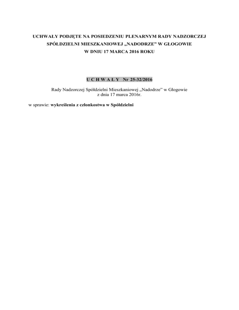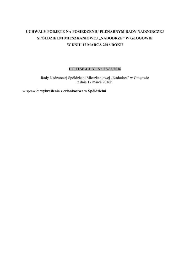 Uchwały nr 25 – 32 Rady Nadzorczej z dnia 17 marca 2016 r.