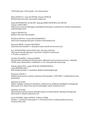 VII Konferencja „Flawonoidy i ich zastosowanie” Maria KOPACZ
