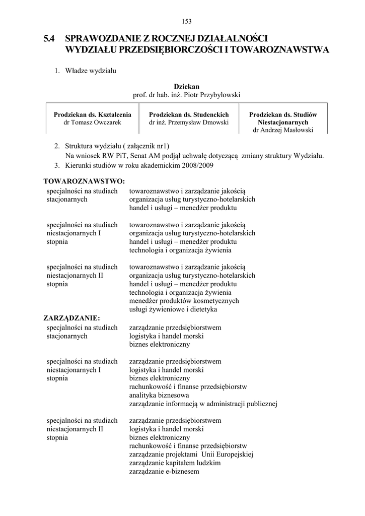 5.4 SPRAWOZDANIE Z ROCZNEJ DZIAŁALNOŚCI WYDZIAŁU