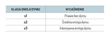KLASA EMISJI DYMU WYJAŚNIENIE s1 Prawie bez dymu s2 Średnia emisja dymu s3 Intensywna emisja dymu
