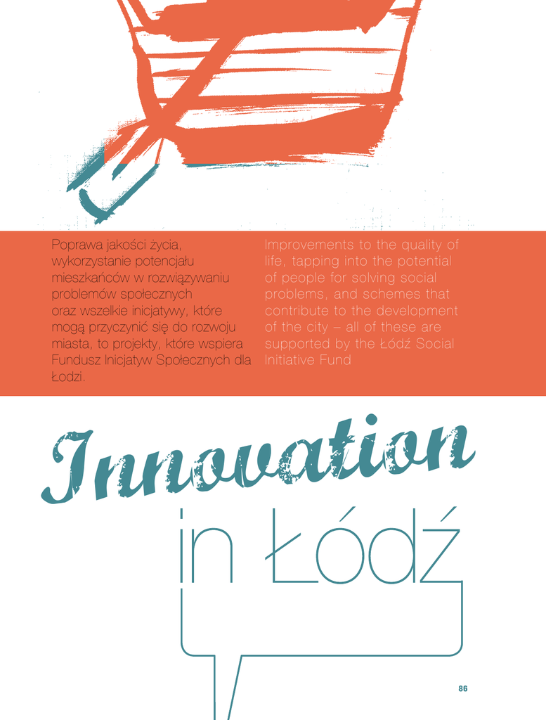 Poprawa jakości życia, wykorzystanie potencjału mieszkańców w rozwiązywaniu problemów społecznych oraz wszelkie inicjatywy, które mogą przyczynić się do rozwoju miasta, to projekty, które wspiera Fundusz Inicjatyw Społecznych dla Łodzi. Improvements to the quality of life, tapping into the potential of people for solving social problems, and schemes that contribute to the development of the city – all of these are supported by the Łódź Social Initiative Fund n o i t a v o n n I 86 e j c a w o n n I F undusz Inicjatyw Społecznych dla Łodzi to pierwsza tego typu inicjatywa w Polsce, gdzie środki prywatne łączone są z budżetem gminy. Dofinansowanie dotyczy innowacyjnych projektów z obszarów: kultury, edukacji czy pomocy społecznej. Jest to możliwe dzięki partnerstwu Programu Narodów Zjednoczonych ds. Rozwoju (UNDP), Łódzkiej Federacji Organizacji Pozarządowych (ŁFOP) i współpracy Urzędu Miasta Łodzi (UMŁ). – Innowacja w naszym rozumieniu to nowatorskie podejście do problemu społecznego, które wykracza poza określoną grupę problemową, obejmując przy tym daną społeczność lokalną – tłumaczy Magdalena Kostulska, koordynatorka koalicji sektora prywatnego UNDP. W 2013 r. Fundusz wspiera organizacje pozarządowe, działające w obszarze przeciwdziałania wykluczeniu społecznemu dzieci i młodzieży do 25. roku życia. Dotacje są realizowane w zakresie nauki, edukacji, oświaty i wychowania poprzez programy aktywizacji społecznej. 87 T he Social Initiative Fund for the city of Łódź is the first such scheme in Poland that involves both private finance and the city budget. Funding is provided for innovative projects in areas such as culture, education and social assistance. This has been made possible through a partnership between the United Nations Development Programme (UNDP), the Łódź Federation of NGOs (ŁFOP) and Łódź city council (UML). “As we understand it, innovation means a new approach to a social problem that transcends specific problem areas, including those of the local community,” explains Magdalena Kostulska, the coordinator of the private sector coalition UNDP. This year the Fund has been supporting NGOs working in the area of combating the exclusion of children and young people under 25 years of age. It provides grants for scientific and educational projects through social inclusion programmes. e j c a w o n n I POSTAWILI NA KREATYWNOŚĆ FUNDUSZ SKŁADA SIĘ W 60 PROC. ZE ŚRODKÓW MIASTA, A W 40 PROC. Z BUDŻETU ZAGWARANTOWANEGO PRZEZ UNDP, KTÓREGO DOTACJE POCHODZĄ Z DAROWIZN OD FIRM PRYWATNYCH REGULARNIE POZYSKIWANYCH W TRAKCIE REALIZACJI PROGRAMU/A TOTAL OF 60% OF THE FUNDS FOR ITS ACTIVITIES IS PROVIDED BY THE CITY BUDGET AND 40% IS GUARANTEED BY UNDP Celem Funduszu jest wspieranie inicjatyw, które przyczyniają się do rozwoju miasta, budują organizacje pozarządowe i sprzyjają wykorzystaniu potencjału wszystkich mieszkańców. Fundusz składa się w 60 proc. ze środków Miasta, a w 40 proc. z budżetu zagwarantowanego przez UNDP, którego dotacje pochodzą z darowizn od firm prywatnych regularnie pozyskiwanych w trakcie realizacji programu. – Organizacje pozarządowe otrzymały po 10 tys. zł promesy dzięki wsparciu darczyńców zaangażowanych w Fundusz Inicjatyw Społecznych. To właśnie dzięki udziałowi sektora biznesowego było możliwe dofinansowanie innowacyjnych pomysłów – dodaje Magdalena Kostulska. Fundusz stawia również na wzmocnienie młodych i niedoświadczonych organizacji pozarządowych, dlatego wspierane są przede wszystkim inicjatywy o budżecie nie większym niż 50 tys. zł. BETTING ON CREATIVITY The objective of the Fund is to support initiatives that contribute to the development of the city, that build up its NGO capacity and that promote the potential of all its citizens. A total of 60% of the funds for its activities is provided by the city budget and 40% is guaranteed by UNDP. Donations come from private companies and are regularly raised during the running of the programme. “Each NGO receives PLN 10,000 in pledges thanks to the support of donors engaged in the Social Initiative Fund. The funding of these innovative ideas has been made possible due to the participation of the business sector,” adds Magdalena Kostulska. The Fund focuses on supporting young and inexperienced NGOs, and this is why priority is given to initiatives with budgets of no more than PLN 50,000. ‘ELEPHANTS ON THE BALCONY’ „SŁONIE NA BALKONIE” Dotacje zostały przyznane na podstawie dwóch następujących po sobie konkursów – pierwszy, ogłoszony przez UNDP i ŁFOP, a drugi przez UMŁ. W pierwszym etapie wybrane zostały projekty, które otrzymały promesę, czyli warunkowe przyznanie dofinansowania w wysokości 40 proc. całego budżetu przeznaczonego na realizację projektu. – Przy ocenie, w ramach konkursu organizowanego przez Urząd Miasta Łodzi, promesa jest traktowana jako wkład własny organizacji pozarządowej starającej się o dotację. Posiadanie promesy było ponadto dodatkowo punktowane przy końcowej ocenie projektu – wyjaśnia Łukasz Prykowski z Urzędu Miasta Łodzi. Pilotażowo w 2013 roku wsparciu podlegają inicjatywy mające na celu przeciwdziałanie wykluczeniu społecznemu dzieci i młodzieży do 25. roku życia. Jedną z instytucji, które otrzymały wsparcie, jest Fundacja „Słonie na balkonie”. – Podopieczni Fundacji to pacjenci dziecięcego oddziału psychiatrycznego Szpitala Grants are awarded on the basis of two consecutive competitive tenders – the first of which are organised by the UNDP and ŁFOP, and the second by the city council. In the first stage the projects that are selected are given a commitment for a conditional grant covering 40% of their total budget. “During the evaluation process of the competition organised by the City of Łódź, such commitments are treated as an own contribution of the non-governmental organ