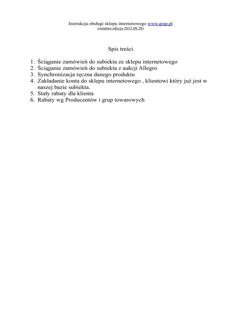 Spis treści 1. Ściąganie zamówień do subiekta ze sklepu