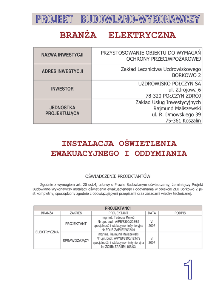 I INSTALACJI O WIETLENIA EWAKUACYJNEGO