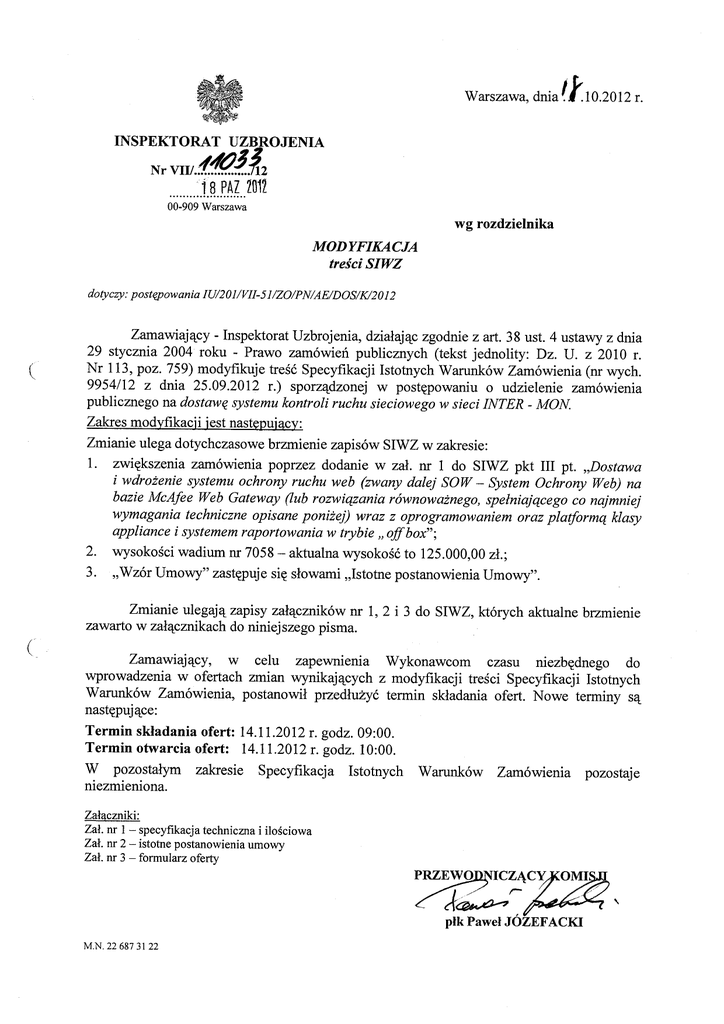 Modyfikacja SIWZ - Inspektorat Uzbrojenia
