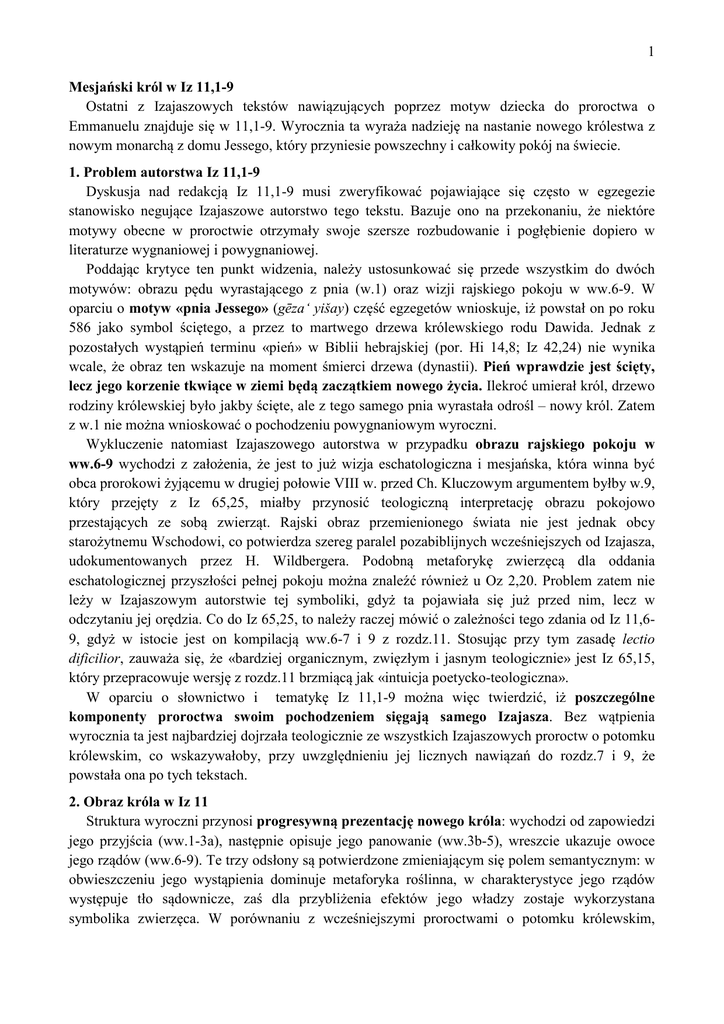 1 Mesjański król w Iz 11,1-9 Ostatni z Izajaszowych tekstów