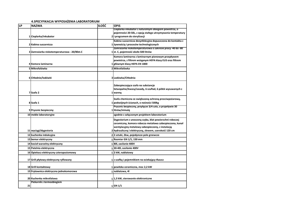 Załącznik 4 - specyfikacja wyposażenia laboratorium