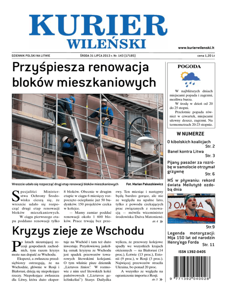 www.kurierwilenski.lt DZIENNIK POLSKI NA LITWIE ŚRODA 31 LIPCA 2013 r. Nr. 143 (17185) cena 1,20 Lt Przyśpiesza renowacja bloków mieszkaniowych POGODA W najbliższych dniach miejscami popada i zagrzmi, możliwa burza. W środę w dzień od 20 do 25 stopni. Przelotnie popada również w czwartek, miejscami ulewny deszcz, zagrzmi. Na termometrach 20-23 stopnie. W NUMERZE Wreszcie udało się rozpocząć drugi etap renowacji bloków mieszkaniowych S pecjaliści Ministerstwa Ochrony Środowiska cieszą się, że wreszcie udało się rozpocząć drugi etap renowacji bloków mieszkaniowych. W ciągu pierwszego etapu poddano renowacji tylko 8 bloków. Obecnie w drugim etapie w ciągu 6 miesięcy rozpoczęto ocieplanie już 50 budynków. 150 projektów czeka w kolejce. — Mamy zamiar poddać renowacji około 1 600 bloków. Prace trwają bez prze- Fot. Marian Paluszkiewicz rwy. Ten miesiąc i następny będą bardzo gorące, ale nie ze względu na upalne lato, tylko z powodu czekających prac związanych z renowacją — mówiła wiceminister środowiska Daiva Matonienė. Kryzys zieje ze Wschodu P o latach nieustającej recesji gospodarek zachodnich, tym razem kryzys może nas dopaść ze Wschodu. Eksperci, a zwłaszcza przedsiębiorcy ostrzegają, że na Wschodzie, głównie w Rosji i Białorusi, dzieją się niepokojące rzeczy. Niepokojące zwłaszcza dla Litwy, która dużo ekspor- tuje na Wschód i tam też dużo inwestuje. Przysłowiową jaskółką oznak kryzysu ze Wschodu jest spadek przewozów towarowych litewskimi kolejami. O tym właśnie pisze dziennik „Lietuvos žinios”. W rozmowie z nim szef litewskich kolei państwowych („Lietuvos geležinkeliai”) Stasys Dailydka str. 4 » wylicza, że przewozy kolejowe spadły we wszystkich krajach ościennych — na Białorusi (14 proc.), Łotwie (13 proc.), Estonii (9 proc.), w Rosji (3 proc.). Najwięcej przewozów straciła Ukraina, bo ponad 20 proc. A wszystko ze względu na ograniczenie importu z Rosji. str. 5 » O kibolskich koalicjach Str. 2 Banel kontra Litwa Str. 3 Pijany pasażer za rozróbę w samolocie otrzymał grzywnę Str. 6 MŚ w pływaniu: rekord świata Meilutytė ozdobą dnia Str.9 Legenda motoryzacji: Mija 150 lat od narodzin Henry’ego Forda Str. 11 ISSN 1392-0405 WYDARZENIA 3 KURIER WILEŃSKI • Środa, 31 lipca 2013 r. Banel kontra Litwa 18 czerwca 2013 roku doszło do ogłoszenia wy roku Europejskiego Trybunału Praw Człowieka (ETPCz), mocą którego wnioskodawca Waneta Banel wygrała sprawę przeciwko Litwie. S prawa dotyczyła okoliczności śmierci Edgara — syna W. Banel spowodowanej zaniedbaniem samorządu miasta Wilna oraz spółki samorządowej „Naujamiesčio būstas”. Do tragicznego wydarzenia doszło 6 czerwca 2005 roku. Edgar — syn Wanety Banel — bawił się z innymi dziećmi tuż obok mieszkania, w którym mieszkał. Podczas zabawy w starym opuszczonym domu, troje dzieci weszło na balkon, który nie wytrzymał wagi i runął w dół. Trzynastoletni chłopczyk z powodu licznych, ciężkich obrażeń ciała (w tym — złamanego kręgosłupa) zginął na miejscu, a jego przyjaciele V. J. i A. B. zostali hospitalizowani. Tego samego dnia policja wszczęła śledztwo. Wnioskodawca w toku postępowania wniósł przeciwko samorządowi pozew o kwotę w wysokości 3 mln litów za wyrządzoną szkodę moralną oraz za koszty poniesione w toczącej się sprawie. Waneta Banel argumentowała to tym, że jej syn zginął, ponieważ funkcjonariusze samorządu nie zadbali o należny stan opuszczonego budynku. Obowiązek ten wynikał z artykułu 42 ustawy o budownictwie. W 2007 br. prokuratura Wilna wydała decyzję, na mocy której umorzyła postępowanie przygo- Wnioskodawca w toku po stępowania wniósł prze ciwko samorządowi po zew o kwotę w wysokości 3 mln litów za wyrządzo ną szkodę moralną oraz za koszty poniesione w toczącej się sprawie. towawcze. Decyzję motywowała tym, że w związku z „istotnymi” zmianami w organizacji samorządu oraz spółki samorządowej „Naujamiesčio būstas”,które miały miejsce w latach 1999– 2005, nie można ustalić winnego. Na dodatek, w oparciu o artykuł 20, paragraf 5 kodeksu karnego uznała, że osoba prawna, jaką jest samorząd i podlegająca pod niego spółka, nie może być podmiotem przestępstwa. Decyzja została zaskarżona. W 2009 roku Sąd Rejonowy Nr.1 w Wilnie wydał orzeczenie, w którym nie wskazał winowajcy z powodu nieuzyskania wystarczającego materiału dowodowego przez oskarżyciela publicznego. Po wyczerpaniu drogi sądowej Waneta Banel złożyła skargę do Europejskiego Trybunału Praw Człowieka. Po zapoznaniu się z całą sprawą, zaistniałymi okolicznościami i wyrokami sądów Litwy, ETPCz uznał, że władze municypalne naruszyły poszczególne przepisy krajowe (art. 42, par. 3, ust. 1 ustawy o budownictwie) jak też art. 2 Konwencji o Ochronie Praw Człowieka i Podstawowych Wolnościach. Trybunał powołał się m. in. na orzeczenie Sądu Najwyższego (3K-7-365/2005) i Okręgowego Sądu w Kłajpedzie (21421-253/2010), w których władze municypalne uznano winnymi w związku z niewykonaniem należących do nich obowiązków. ETPCz zwrócił uwagę na to, że zgodnie z artykułem 229 Kodeksu Karnego i artykułem 6.250 Kodeksu Cywilnego Litwa musi wypłacić odszkodowanie na rzecz wnioskodawcy w wymiarze 28 135 euro za wyrządzoną szkodę moralną i koszty procesowe. Inf. EFHR PULS KURIERA ZDJĘCIE DNIA Amerykanin Dan McManus z Salt Lake City i jego pies o imieniu Cień, który towarzyszy swojemu opiekunowi... Fot. archiwum KOMENTARZ DNIA Niesmak po paradzie Opadł kurz gejowskiej parady równości. Każda ze stron — ta paradująca i ta protestująca przeciwko paradzie — może podsumować straty i zyski. Raczej zyski, bo strat było niewiele. Protestujący rzucali jajkami, więc zabrudzili kilka ciuchów paradującym. Samych protestujących (kilku z nich) pozamykano w aresztach, więc będą chyba musieli 