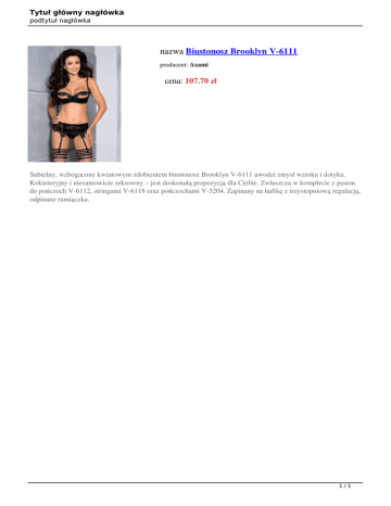 Tytuł główny nagłówka podtytuł nagłówka nazwa Biustonosz Brooklyn V-6111 producent: Axami cena: 107.70 zł Subtelny, wzbogacony kwiatowym zdobieniem biustonosz Brooklyn V-6111 uwodzi zmysł wzroku i dotyku. Kokieteryjny i niesamowicie seksowny – jest doskonałą propozycją dla Ciebie. Zwłaszcza w komplecie z pasem do pończoch V-6112, stringami V-6118 oraz pończochami V-5204. Zapinany na haftkę z trzystopniową regulacją, odpinane ramiączka. 1/1