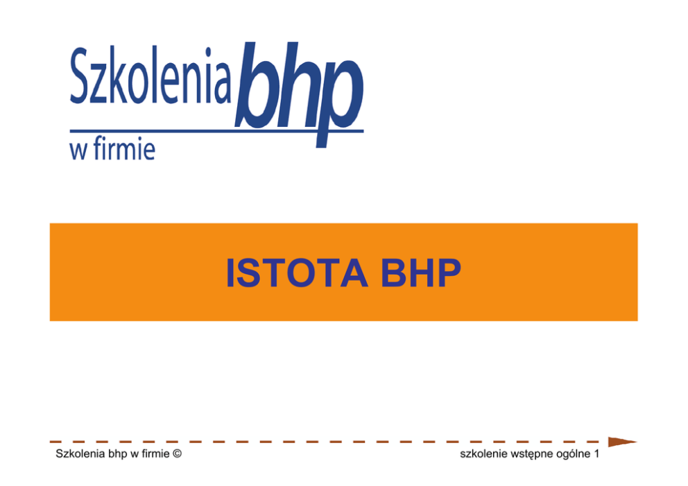 ISTOTA BHP Szkolenia bhp w firmie © szkolenie wstępne ogólne 1 Najważniejsze pojęcia Najważniejsze pojęcia: bezpieczeństwo higiena pracy ochrona pracy Szkolenia bhp w firmie © szkolenie wstępne ogólne 2 Regulacje prawne REGULACJE PRAWNE DOTYCZĄCE OCHRONY PRACY Dział X Kodeksu pracy zatytułowany „Bezpieczeństwo i higiena pracy” reguluje następujące zagadnienia: • podstawowe obowiązki pracodawcy, • prawa i obowiązki pracownika, • obiekty budowlane i pomieszczenia pracy, • maszyny i inne urządzenia techniczne, • substancje chemiczne oraz procesy pracy szczególnie szkodliwe dla zdrowia lub niebezpieczne, • profilaktyczna ochrona zdrowia, Szkolenia bhp w firmie © szkolenie wstępne ogólne 3 Regulacje prawne cd • wypadki przy pracy i choroby zawodowe, • szkolenia, • środki ochrony indywidualnej oraz odzież i obuwie robocze, • służba bezpieczeństwa i higieny pracy, • konsultacje w zakresie bezpieczeństwa i higieny pracy oraz komisja bhp, • obowiązki organów sprawujących nadzór nad przedsiębiorstwami lub innymi jednostkami organizacyjnymi państwowymi albo samorządowymi, • przepisy bhp dotyczące wykonywania prac w różnych gałęziach pracy. Szkolenia bhp w firmie © szkolenie wstępne ogólne 4 Państwowy nadzór nad bhp PAŃSTWOWY NADZÓR NAD PRZESTRZEGANIEM PRZEPISÓW BHP Sejm Minister Zdrowia Państwowa Inspekcja Pracy Państwowa Inspekcja Sanitarna • nadzór i kontrola przestrzegania przez pracodawców prawa pracy, przepisów i zasad bhp, przepisów dotyczących stosunku pracy, np.: - zawierania i wypowiadania umów o pracę, - wynagrodzenia za pracę, innych świadczeń, - czasu pracy, urlopów, uprawnień pracowników związanych z rodzicielstwem; • analizowanie przyczyn wypadków przy pracy i chorób zawodowych; • udział w badaniu okoliczności wypadków przy pracy na zasadach określonych w przepisach prawa pracy. Szkolenia bhp w firmie © Nadzór nad warunkami: ♦ higieny środowiska, ♦ higieny pracy w zakładach pracy, ♦ higieny radiacyjnej, ♦ higieny procesów nauczania i wychowania, ♦ higieny wypoczynku i rekreacji, ♦ zdrowotnymi żywności, żywienia i przedmiotów użytku, ♦ higieniczno-sanitarnymi, jakie powinien spełniać personel medyczny, sprzęt oraz pomieszczenia, w których są udzielane świadczenia zdrowotne. Inne organy Urząd Dozoru Technicznego urzędy górnicze organy nadzoru budowlanego Inspekcja Ochrony Środowiska Państwowa Straż Pożarna Policja szkolenie wstępne ogólne 5 Społeczny nadzór nad bhp SPOŁECZNY NADZÓR NAD PRZESTRZEGANIEM BHP Związki zawodowe Pracownicy lub ich przedstawiciele Społeczna inspekcja pracy (może być powołana tylko jeśli istnieją związki zawodowe) Szkolenia bhp w firmie © szkolenie wstępne ogólne 6 Zakład pracy szkolonego ZAKŁAD PRACY SZKOLONEGO • przedmiot działalności zakładu pracy • struktura organizacyjna zakładu • ogólne rygory bezpieczeństwa, których należy przestrzegać podczas pobytu i poruszania się w zakładzie pracy • proces technologiczny • szczegółowe zasady postępowania zawarte w instrukcjach bhp znajdujących się na terenie zakładu pracy • uregulowania wewnętrzne obowiązujące z zakładzie pracy (w szczególności dotyczące bhp) Szkolenia bhp w firmie © szkolenie wstępne ogólne 7