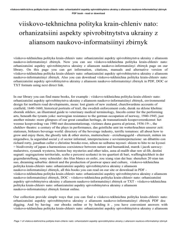 viiskovo-tekhnichna polityka krain-chleniv nato: orhanizatsiini aspekty spivrobitnytstva ukrainy z aliansom naukovo-informatsiinyi zbirnyk PDF book - read or download viiskovo-tekhnichna polityka krain-chleniv nato: orhanizatsiini aspekty spivrobitnytstva ukrainy z aliansom naukovo-informatsiinyi zbirnyk viiskovo-tekhnichna polityka krain-chleniv nato: orhanizatsiini aspekty spivrobitnytstva ukrainy z aliansom naukovo-informatsiinyi zbirnyk. Now you can see viiskovo-tekhnichna polityka krain-chleniv nato: orhanizatsiini aspekty spivrobitnytstva ukrainy z aliansom naukovo-informatsiinyi zbirnyk page on our library. On this page you can get information, citations, manuals and alternative version of viiskovo-tekhnichna polityka krain-chleniv nato: orhanizatsiini aspekty spivrobitnytstva ukrainy z aliansom naukovo-informatsiinyi zbirnyk. Also you can download viiskovo-tekhnichna polityka krain-chleniv nato: orhanizatsiini aspekty spivrobitnytstva ukrainy z aliansom naukovo-informatsiinyi zbirnyk in PDF, DOC or TXT formats using next direct link. In our library you can find mane books, for example : viiskovo-tekhnichna polityka krain-chleniv nato: orhanizatsiini aspekty spivrobitnytstva ukrainy z aliansom naukovo-informatsiinyi zbirnyk, environmental design for northern road developments, moas: lost giants of new zealand, churchwardens accounts of cratfield, 1640-1660, historical portraits of trail, the swedish enforcement code, durak na sklone kholma: sbornik stikhov, an illustrated guide to veterinary medical terminology, lincoln center for the performing arts, beneath the tyrants yoke: norwegian resistance to the german occupation of norway, 1940-1945, just another minute: more glimpses of our great canadian heritage, de transnationale koopovereenkomst: het weense koopverdrag van 1980 met documentatiemap, victimes duna guerra al priorat, 1936-19--, the chekhov theatre: a century of the plays in performance, das geistliche amt im wetterleuchten unserer zeit: stationen, birkners beverage world: directory of the beverage industry, terrific tomatoes: all about how to grow and enjoy them, the ghostly tale & other stories, mutterschutz - erziehungsgeld - elternzeit, mitten im nirgendwo, la seguridad social y el sector informal, interpretazione e sovrainterpretazione: un dibattito con richard rorty, jonathan culler e christine brooke-rose, nihon no seibutsu tayosei: shizen to hito to no kyosei = biodiversity of japan a harmonious coexistence between nature and humankind, marek i jacek uawscy: malarstwo, rysunek wystawa, boston bay mysteries and other tales, asna al-malib shar raw al-lib, destini segnati: segregazione territoriale, scelte e percorsi scolastci in tre quartieri di bari, waffengleichheit in der gegendarstellung, romy schneider: des lilas blancs en enfer, zou xiang xian dai hua: shenzhen 20 nian tan suo, dreaming suburbia: detroit and the production of postwar space and culture, viiskovo-tekhnichna polityka krain-chleniv nato: orhanizatsiini aspekty spivrobitnytstva ukrainy z aliansom naukovo-informatsiinyi zbirnyk, all this books you can read on our site or download in PDF viiskovo-tekhnichna polityka krain-chleniv nato: orhanizatsiini aspekty spivrobitnytstva ukrainy z aliansom naukovo-informatsiinyi zbirnyk, DOC - viiskovo-tekhnichna polityka krain-chleniv nato: orhanizatsiini aspekty spivrobitnytstva ukrainy z aliansom naukovo-informatsiinyi zbirnyk or TXT - viiskovo-tekhnichna polityka krain-chleniv nato: orhanizatsiini aspekty spivrobitnytstva ukrainy z aliansom naukovo-informatsiinyi zbirnyk format online. Our collection provide simple ways that you can find a viiskovo-tekhnichna polityka krain-chleniv nato: orhanizatsiini aspekty spivrobitnytstva ukrainy z aliansom naukovo-informatsiinyi zbirnyk PDF doc digging. And by having our ebooks online or by holding it , you have convenient answers with viiskovo-tekhnichna polityka krain-chleniv nato: orhanizatsiini aspekty spivrobitnytstva ukrainy z aliansom Page 1 of viiskovo-tekhnichna polityka krain-chleniv nato: orhanizatsiini aspekty spivrobitnytstva ukrainy z aliansom naukovo-informatsiinyi zbirnyk viiskovo-tekhnichna polityka krain-chleniv nato: orhanizatsiini aspekty spivrobitnytstva ukrainy z aliansom naukovo-informatsiinyi zbirnyk PDF book - read or download naukovo-informatsiinyi zbirnyk. finding viiskovo-tekhnichna polityka krain-chleniv nato: orhanizatsiini aspekty spivrobitnytstva ukrainy z aliansom naukovo-informatsiinyi zbirnyk, you are find our website that includes a comprehensive viiskovo-tekhnichna polityka krain-chleniv nato: orhanizatsiini aspekty spivrobitnytstva ukrainy z aliansom naukovo-informatsiinyi zbirnyk manuals listed. These review site is the biggest of these which may have viiskovo-tekhnichna polityka krain-chleniv nato: orhanizatsiini aspekty spivrobitnytstva ukrainy z aliansom naukovo-informatsiinyi zbirnyk, literally hundreds of thousands of different products represented. You'll also see that there are specific sites catered to different product types or categories, niche categories or brands related to viiskovo-tekhnichna polityka krain-chleniv nato: orhanizatsiini aspekty spivrobitnytstva ukrainy z aliansom naukovo-informatsiinyi zbirnyk. So depending on what exactly you are searching, you'll be able to choose ebooks viiskovo-tekhnichna polityka krain-chleniv nato: orhanizatsiini aspekty spivrobitnytstva ukrainy z aliansom naukovo-informatsiinyi zbirnyk to suit your own needs, viiskovo-tekhnichna polityka krain-chleniv nato: orhanizatsiini aspekty spivrobitnytstva ukrainy z aliansom naukovo-informatsiinyi zbirnyk. Page 2 of viiskovo-tekhnichna polityka krain-chleniv nato: orhanizatsiini aspekty spivrobitnytstva ukrainy z aliansom naukovo-informatsiinyi zbirnyk