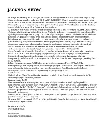 jackson show - Miejski Ośrodek Kultury w Piotrkowie Trybunalskim