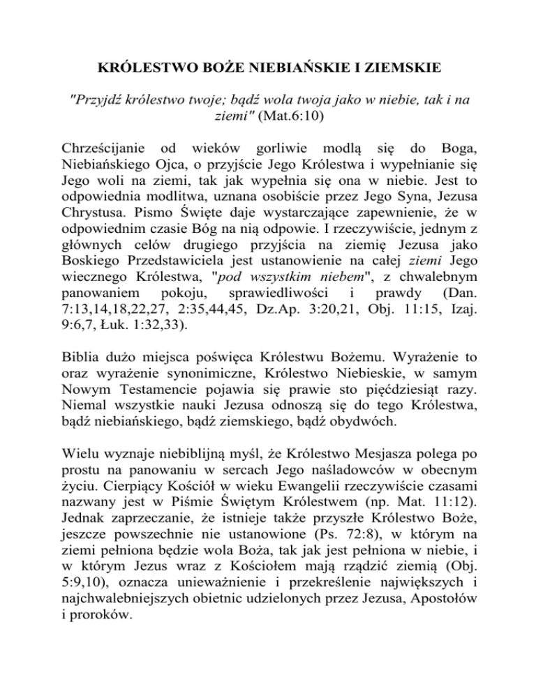 KRÓLESTWO BOŻE NIEBIAŃSKIE I ZIEMSKIE