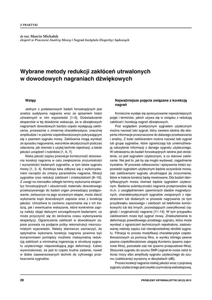 9. Michałek M.: Noise reduction in evidence audio recordings with use of speech spectral amplitude estimation,