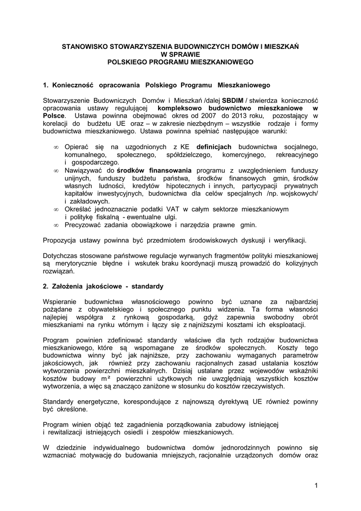1 STANOWISKO STOWARZYSZENIA BUDOWNICZYCH DOMÓW I