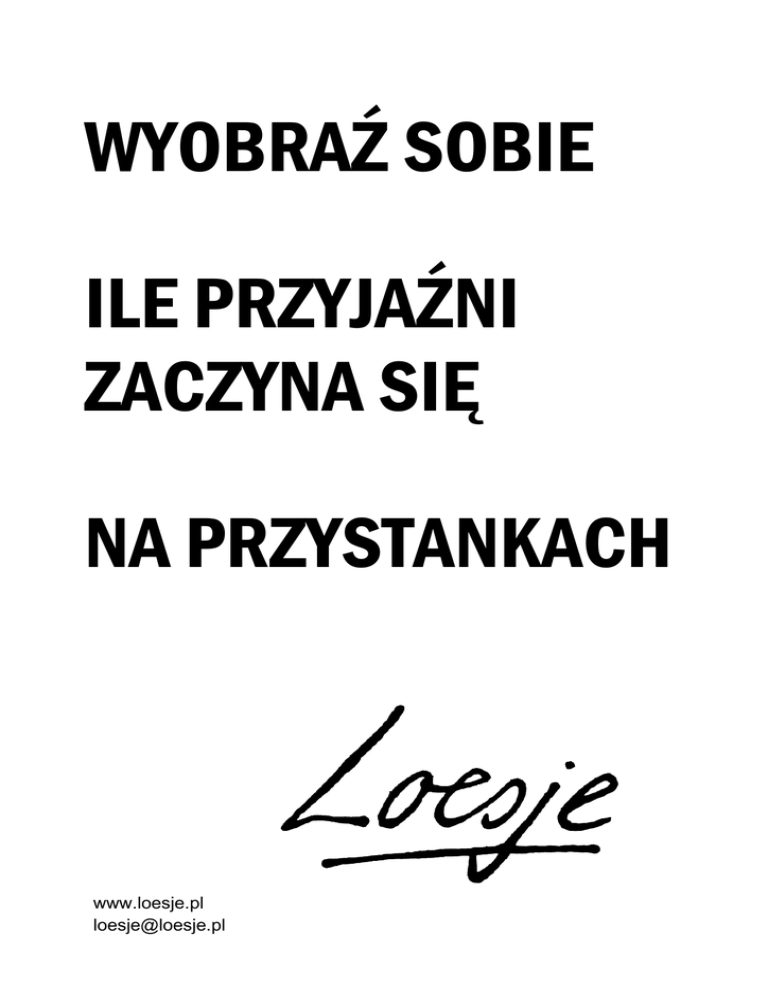 WYOBRAŹ SOBIE ILE PRZYJAŹNI ZACZYNA SIĘ NA PRZYSTANKACH www.loesje.pl [email protected]