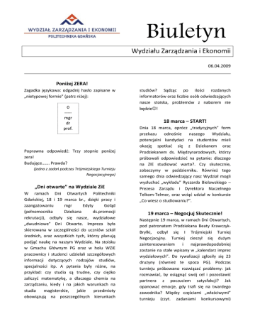 Biuletyn - Wydział Zarządzania i Ekonomii