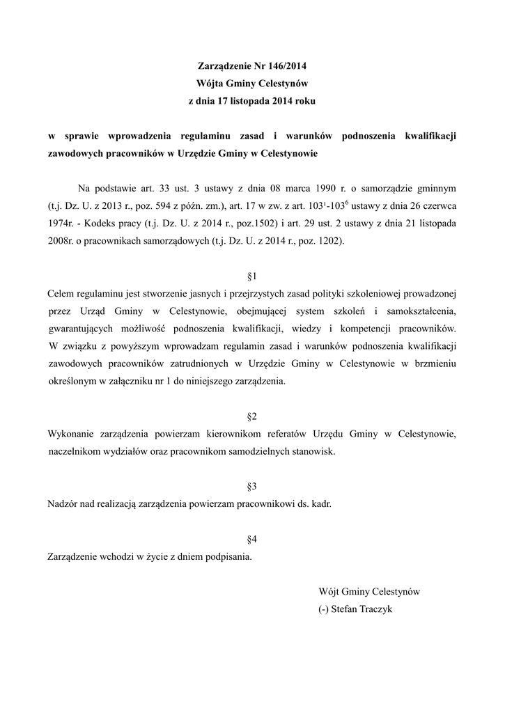 Zarządzenie Nr 146/2014 Wójta Gminy Celestynów z dnia 17