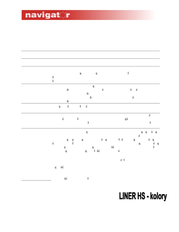 LINER HS żółta, czerwona, niebieska, czarna, zielona. farby akrylowe, rozpuszczalnikowe, do znakowania jezdni Symbol : 24.30.12-50.00 Norma: ZN-PCW-1230:2007 Farba akrylowa rozpuszczalnikowa do znakowania jezdni LINER HS „kolory” stanowią zawiesinę pigmentów i wypełniaczy w roztworze Charakterystyka: żywicy akrylowej w rozpuszczalnikach organicznych z dodatkiem środków pomocniczych. Zakres stosowania: Farba LINER – „kolory” są przeznaczone do wykonywania niektórych oznakowań poziomych jak: przejścia dla pieszych, ścieżki rowerowe i specjalnych oznakowań w strefach powolnego ruchu pojazdów i pieszych, oraz oznakowań tymczasowych jak również do maskowania oznakowań przy zmianie organizacji ruchu. Farbę można nakładać mechanicznie wszystkimi typami malowarek Metody aplikacji: (malowarki pneumatyczne i hydrodynamiczne). Wydajność: Własności użytkowe: Na dobrych nawierzchniach poprawne parametry oznakowania można uzyskać przy nakładzie farby 600g na m2. W najczęściej spotykanych warunkach zalecany nakład to 600g – 800g na m².Maksymalny nakład farby w jednej warstwie wynosi 900g na m2 Farba charakteryzuje się krótkim czasem wysychania, wysoką gęstością i bardzo dobrym kryciem. Oznakowania wykonane z użyciem farby odznaczają się dobrą przyczepnością do podłoża, dobrą odpornością na ścieranie i wpływ warunków atmosferycznych, bardzo dobrą szorstkością Ze względu na bardzo dobrą przyczepność mikrokulek do farby, powłoki utrzymują bardzo dobrą trwałość odblaskowości w czasie eksploatacji. Podstawowe dane techniczne: Barwa Gęstość w 200C [g/cm3] żółta, czerwona, niebieska, czarna, zielona 1,55 ÷ 1,60 Lepkość wg Krebsa KU 78 - 82 Zawartość substancji stałych [%] 75 – 79 Czas schnięcia: W warunkach zbliżonych do optymalnych, czyli przy temperaturze powietrza około 20°C i temperaturze nawierzchni 25°C przy nakładzie 700 g/m² i względnej wilgotności powietrza nie przekraczającej 80% czas do uzyskania przejezdności wynosi 25 min. Wraz ze spadkiem temperatury i zmianie wilgotności bądź przy większym nakładzie farby czas schnięcia może ulec wydłużeniu. Rozcieńczalnik: Rozcieńczalnik WPZ 11 do farb do znakowania jezdni Sposób stosowania: Farbę LINER HS „kolory”, nanosi się na czyste, suche i spójne podłoża bitumiczne. Ze względu na możliwość wystąpienia zażółcenia oznakowań nie jest zalecane stosowanie farby na podłoża typu smołowego. Przed użyciem farbę należy dokładnie wymieszać w celu ujednorodnienia wyrobu w całej objętości oryginalnego opakowania. Lepkość farby w stanie dostawy przystosowana jest bezpośrednio do malowania. Jedynie w przypadku znacznego wzrostu lepkości farby spowodowanego np. niską temperaturą otoczenia (5-10oC) dopuszcza się jej rozcieńczenie niewielką ilością rozcieńczalnika WPZ 11 do farb do znakowania jezdni w ilości do 2% wagowych. Nadmierne stosowanie rozcieńczalnika jest niedopuszczalne ze względu na otrzymywanie powłok o obniżonej trwałości. Farbę należy nanosić w zakresie temperatur powietrza i nawierzchni 5-35°C przy wilgotności względnej powietrza nieprzekraczającej 80%. Niedopuszczalne jest stosowanie farby podczas występowania mgły lub rosy. Farbę można nanosić malowarkami pneumatycznymi lub hydrodynamicznymi. Wiadro 30 kilogramowe metalowe. W oryginalnych opakowaniach nienarażonych na bezpośrednie działanie Okres gwarancji: promieni słonecznych przez okres 12 miesięcy od daty produkcji. Farb012a>980(at)2[( yrobems wyoce i)]TJ/TT1 1 Tf3.25 0 TD0 Tc0 Tw<00e1>Tj/TT2 1 Tf0.28 0 i ż Przepisy BHP i Ppoż.: Opakowania: