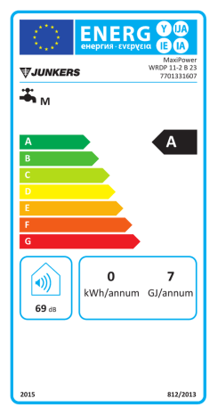 Ι MaxiPower WRDP 11-2 B 23 7701331607 M A A B C D E F G 0 7 kWh/annum GJ/annum 69 dB 2015 812/2013 Karta produktu dot. zużycia energii MaxiPower WRDP 11-2 B 23 7701331607 Poniższe dane produktu spełniają wymagania rozporządzeń UE 811/2013, 812/2013, 813/2013 i 814/2013 uzupełniających dyrektywę 2010/30/UE. Dane produktu Symbol Jednostka 7701331607 Emisja tlenków azotu (tylko dla gazu lub oleju) NOx mg/kWh 183 Poziom mocy akustycznej w pomieszczeniu LWA dB 69 Klasa efektywności energetycznej podgrzewania wody A Deklarowany profil obciążeń M Inne profile obciążeń S Dzienne zużycie energii elektrycznej (warunki klimatu umiarkowanego) Qelec kWh 0,000 Roczne zużycie energii elektrycznej AEC kWh 0 Roczne zużycie energii elektrycznej (inne prifile obciążeń, warunki klimatu umiarkowanego) AEC kWh 0 Efektywność energetyczna podgrzewania wody ηwh % 71 Efektywność energetyczna podgrzewania wody (inne profile obciążeń) ηwh % 66 Dzienne zużycie paliwa Qfuel kWh 8,977 Roczne zużycie paliwa AFC GJ 7 Roczne zużycie paliwa (inne profile obciążeń) AFC GJ 3 kWh 0,000 kWh 0,000 Tygodniowe zużycie paliwa przy cyfrowym sterowaniu Tygodniowe zużycie energii elektrycznej przy inteligentnej regulacji Qfuel,week,sm art Qelec,week,sm ar Tygodniowe zużycie paliwa bez cyfrowego sterowania Qfuel,week kWh 0,000 Tygodniowe zużycie energii elektrycznej bez inteligentnej regulacji Qelec,week kWh 0,000 Bosch Thermotechnik GmbH - Junkersstrasse 20-24 - D-73249 Wernau/Germany 6720835105 (2015/04)
