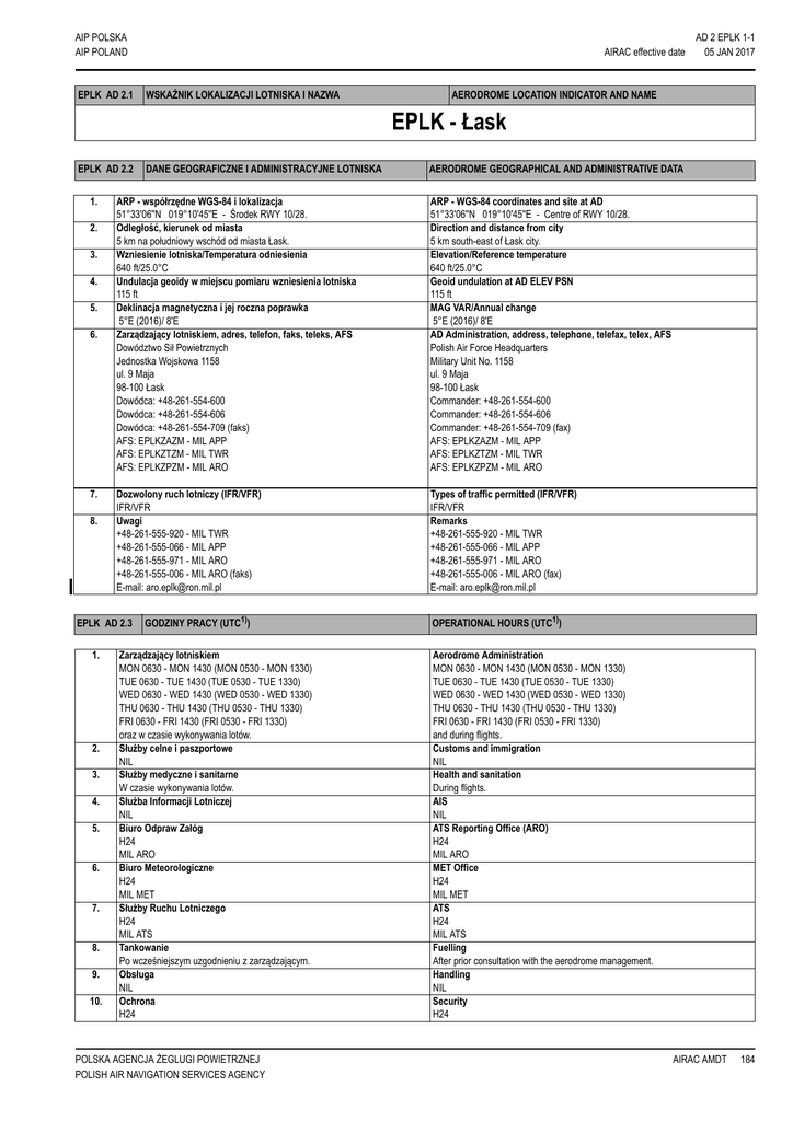 EPLK - Łask - ais.pansa.pl - Polska Agencja Żeglugi Powietrznej