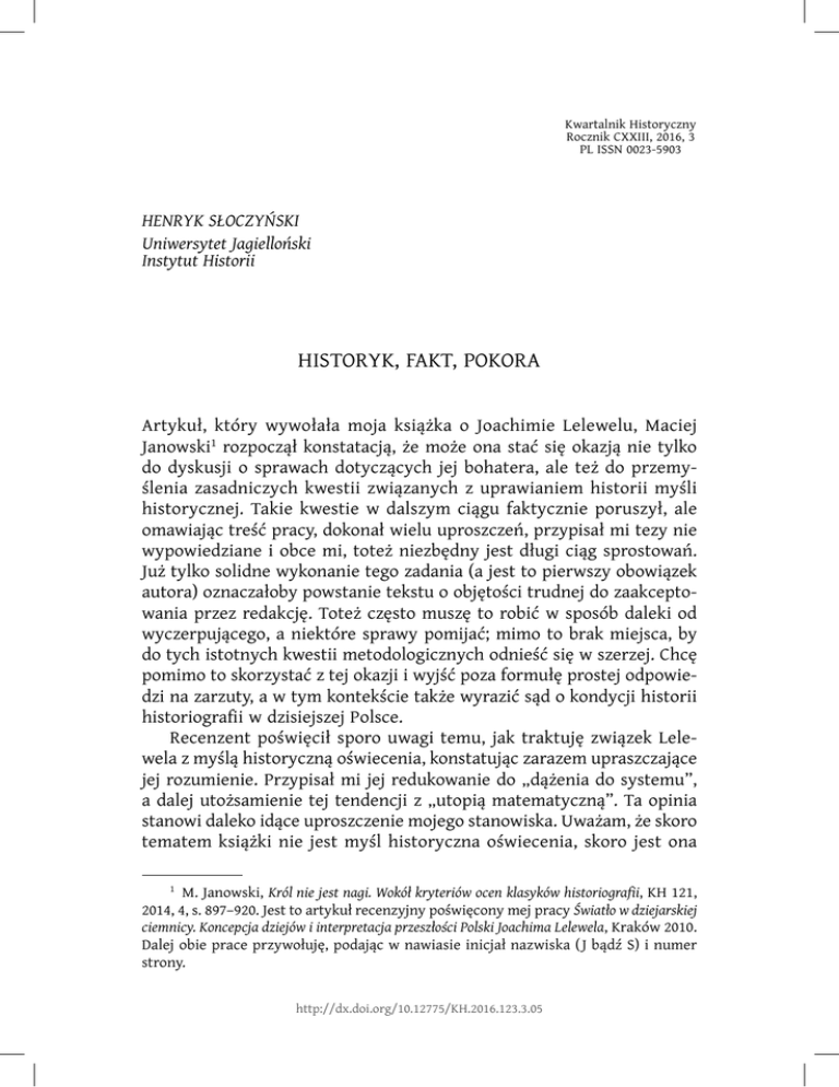historyk, fakt, pokora - Kwartalnik Historyczny