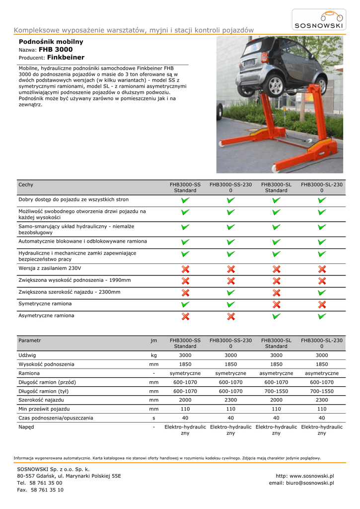 Sosnowski - Karta Katalogowa - Podnośnik mobilny Finkbeiner FHB