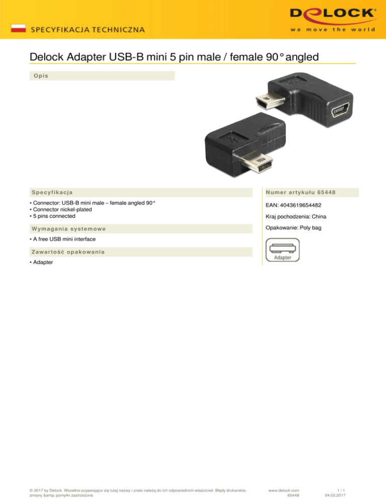 Delock Adapter USB-B mini 5 pin male / female 90°angled