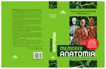 ISBN 978-83-65373-64-9 www.edraurban.pl ANATOMIA prof. dr hab. n. med. Bogdan Ciszek dr n. med. Krzysztof Krasucki Radovan Hudák David Kachlík Ondřej Volný i in. MEMORIX Memorix Anatomia to pierwsze polskie wydanie bardzo popularnego na świecie czeskiego podręcznika do anatomii, który w syntetycznej formie zawiera treści wymagane programami nauczania przedmiotu ANATOMIA CZLOWIEKA na różnych kierunkach studiów. W publikacji w niezwykle systematyczny sposób omówiono wszystkie układy narządów i tkanek niezbędne do zrozumienia struktury przestrzennej organizmu ludzkiego, co sprawia, że jest ona bardzo praktyczna. Na szczególną uwagę zasługują ryciny, które doskonale współgrają z tekstem oraz zastosowane polsko-angielsko-łacińskie mianownictwo anatomiczne oparte na najnowszych międzynarodowych ustaleniach, do czego zespół tłumaczy i redaktorów przyłożył szczególną wagę. Podręcznik adresowany jest do szerokiego grona studentów kierunków lekarskich, lekarsko-dentystycznych, fizjoterapii, pielęgniarstwa, położnictwa, ratownictwa medycznego i innych pokrewnych, stanowiąc nieodzowną pomoc zarówno w samokształceniu, jak i w powtórkach do egzaminów. Z kolei dla klinicystów i praktyków będzie to cenne kompendium anatomiczne, które w krótkim czasie pozwoli na odświeżenie potrzebnych informacji, ułatwi lekturę obcojęzycznych podręczników i artykułów oraz będzie stanowić wygodny słownik terminów anatomicznych. Największe atuty podręcznika: - logiczny i przejrzysty układ treści, liczne tabele i schematy - aktualne polsko-angielsko-łacińskie mianownictwo anatomiczne - znakomite ryciny znacznie poprawiające pracę z tekstem - liczne uwagi kliniczne i rozwojowe - zestawy pytań i rycin do samokształcenia w każdym rozdziale Radovan Hudák, David Kachlík Ondřej Volný i in. polsko angielsko lacinskie mianownictwo anatomiczne ANATOMIA Redakcja Bogdan Ciszek, Krzysztof Krasucki Spis treści Zespół redakcyjny ................................................................................................................................................................................................................................V Przedmowa albo dlaczego Memorix anatomia to rewolucja . .......................................................................................................................................................... XII System nauczania Memorix .............................................................................................................................................................................................................. XIII Podziękowania dla współpracowników ...........................................................................................................................................................................................XIV Redaktorzy......................................................................................................................................................................................................................................... XVI Ilustratorzy......................................................................................................................................................................................................................................... XVI Współautorzy ...................................................................................................................................................................................................................................XVII 1 Anatomia – zagadnienia ogólne 1Definicje i historia....................................................................................... 2 2Miana i skróty............................................................................................. 3 3Histologia.................................................................................................... 4 4Embriologia................................................................................................. 5 5Przemiany anatomiczne w dzieciństwie..................................................... 6 6Przemiany anatomiczne w okresie dojrzewania........................................ 7 7Płaszczyzny i linie orientacyjne................................................................... 8 2 3 17 4Klatka piersiowa (thorax; thorax) . ........................................................... 41 5Kości kończyny górnej (bones of upper limb; ossa membri superioris) ..... 42 5.1 Obojczyk (clavicle; clavicula) ............................................................ 42 5.2 Łopatka (scapula; scapula)................................................................ 43 5.3 Kość ramienna (humerus; humerus) . ............................................... 44 5.4 Kość łokciowa (ulna; ulna) ................................................................ 45 5.5 Kość promieniowa (radius; radius) . ................................................. 46 5.6 Kości ręki (bones of hand; ossa manus) ............................................ 47 6Kości kończyny dolnej (bones of lower limb; ossa membri inferioris)........ 48 6.1 Miednica (pelvis; pelvis) ................................................................... 49 6.1.1 Kość miedniczna (hip bone; os coxae) ..................................... 50 6.2 Kość udowa (femur; femur) .............................................................. 52 6.3 Rzepka (patella; patella) ................................................................... 53 6.4 Kość piszczelowa (tibia; tibia) ........................................................... 53 6.5 Strzałka (fibula; fibula) . .................................................................... 54 6.6 Kości stopy (bones of foot; ossa pedis) ............................................. 54 7Ryciny 7.1 Podstawa czaszki ............