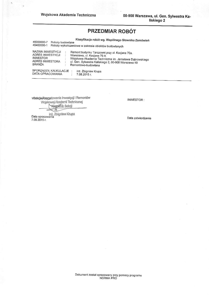 przedmiar robot - Wojskowa Akademia Techniczna