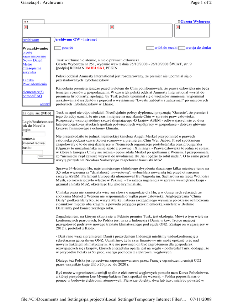 Page 1 of 2 Gazeta.pl : Archiwum 07/11/2008 file://C:\Documents