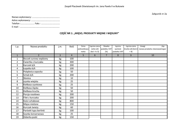 Załącznik nr 2a_Część nr 1 Mięso, produkty mięsne i wędliny