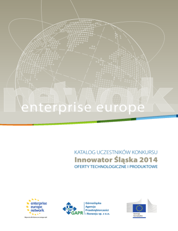 enterprise europe KATALOG UCZESTNIKÓW KONKURSU Innowator Śląska 2014 OFERTY TECHNOLOGICZNE I PRODUKTOWE SIEDZIBA REDAKCJI: Górnośląska Agencja Przedsiębiorczości i Rozwoju sp. z o.o. Regionalne Centrum Innowacji i Transferu Technologii ul. Wincentego Pola 16, 44-100 Gliwice tel. 32 33 93 110 fax: 32 33 93 117 [email protected] www.gapr.pl ZESPÓŁ REDAKCYJNY: Łukasz Szojda Katarzyna Wadiak Marek Wasilewski MATERIAŁ INFORMACYJNY ORAZ FOTOGRAFIE UDOSTĘPNIONE PRZEZ: Zespół redakcyjny, przedsiębiorstwa i instytucje sektora badawczo-rozwojowego uczestniczące w konkursie Innowator Śląska 2014 OPRACOWANIE GRAFICZNE WE WSPÓŁPRACY: Drukarnia KOLUMB, www.drukarniakolumb.pl, [email protected] 2 INNOWATOR ŚLĄSKA Górnośląska Agencja Przedsiębiorczości i Rozwoju sp. z o.o. jest partnerem międzynarodowego projektu Enterprise Europe Network. Projekt realizowany jest od 2008 r. Sieć stanowi grupa ok. 600 instytucji z całej Europy i nie tylko, które współpracując ze sobą wspierają przedsiębiorstwa i instytucje naukowo–badawcze w poszukiwaniu międzynarodowych partnerów handlowych, technologicznych i naukowych. Głównym zamierzeniem działań realizowanych w ramach projektu jest pomoc polskim firmom z sektora MŚP oraz instytucjom badawczym w nawiązywaniu współpracy biznesowej z zagranicznymi partnerami. Cała Sieć wspiera transfer technologii oraz działania na rzecz wzrostu konkurencyjności firm i instytucji naukowych poprzez promocję ich najnowszych rozwiązań. Ośrodek Enterprise Europe Network przy GAPR sp. z o.o. OFERUJE: USŁUGI: • szkolenia, warsztaty, seminaria • p omoc doradcza i informacyjna dla przedsiębiorstw i instytucji badawczych • bezpośredni kontakt z klientami • identyfikacja innowacyjnych rozwiązań dla firm (głównie z sektora MŚP) i instytucji naukowych WSPIERA: • poszukiwania międzynarodowych partnerów handlowych, technologicznych i naukowych • informowanie o rynkach europejskich • promocję innowacyjnych rozwiązań i technologii • informowanie o formach publicznego wsparcia finansowego ORGANIZUJE: • promocja lokalnej przedsiębiorczości w Europie • m isje gospodarcze, spotkania brokerskie przy znanych targach wystawienniczych, dni o transferze technologii • p romocja uczestnictwa polskich podmiotów w projektach Programu Ramowego Horyzont 2020 Z myślą o innowacyjnych śląskich przedsiębiorstwach i instytucjach naukowo-badawczych, pracownicy projektu Enterprise Europe Network zorganizowali siódmą edycję konkursu Innowator Śląska. Kon- kurs skierowany jest do mikro, małych i średnich przedsiębiorstw oraz instytucji sektora badawczo-rozwojowego, które mogą poszczycić się sukcesami w opracowywaniu lub wdrażaniu nowych technologii, innowacyjnych rozwiązań produkcyjnych, usługowych, marketingowych czy organizacyjnych. CELE KONKURSU Innowator Śląska Innowator Śląska Organizacja konkursu związana jest nie tylko z wyborem najbardziej innowacyjnych firm i instytucji naukowych województwa śląskiego, ale również wieloma aspektami wpływającymi na rozwój naszego regionu. Poprzez organizację konkursu chcemy promować innowacyjność w działalności gospodarczej, naukowej śląskich przedsiębiorstw i instytutów, wspierać oraz promować dobre przykłady wdrażania innowacyjnych rozwiązań oraz zachęcać do poszukiwania nowych Województwo Śląskie Województwo Śląskie technologii, wprowadzania stosownych zmian w wewnętrznej organizacji pracy oraz podejmowania szkoleń w tym zakresie. W dalszej części katalogu mogą Państwo przeczytać informacje o firmach i instytucjach naukowych, które zdobyły nagrody, wyróżnienia oraz zakwalifikowały się do trzeciego etapu konkursu na najbardziej innowacyjne śląskie przedsiębiorstwo i instytucję sektora badawczo-rozwojowego. 3 m www.een.net.pl O konsorcjum O konsorcjum W Polsce ośrodki Sieci Enterprise Europe Network są skupione w czterech konsorcjach obejmujących swym zasięgiem cały kraj, są to: • Central Poland– 6 ośrodków na terenie 4 województw (mazowieckie, łódzkie, kujawsko-pomorskie, pomorskie), koordynator: Polska Agencja Rozwoju Przedsiębiorczości. Strona internetowa konsorcjum: www.een.org.pl • East Poland – 6 ośrodków na terenie 3 województw (podlaskie, warmińsko-mazurskie, lubelskie), koordynator: Lubelska Fundacja Rozwoju. Strona internetowa konsorcjum www.eennep.pl • West Poland – 9 ośrodków na terenie 5 województw (zachodniopomorskie, lubuskie, wielkopolskie, dolnośląskie, opolskie), koordynator: Wrocławskie Centrum Transferu Technologii Politechniki Wrocławskiej. Strona internetowa konsorcjum: www.westpoland.pl • South Poland – 9 ośrodków na terenie 4 województw (śląskie, małopolskie, świętokrzyskie, podkarpackie), koordynator: Świętokrzyskie Centrum Innowacji i Transferu Technologii sp. z o.o. Strona internetowa konsorcjum: www.een.net.pl W skład konsorcjum działającego na terenie Polski Południowej wchodzi dziewięciu partnerów: • Świętokrzyskie Centrum Innowacji i Transferu Technologii sp. z o.o. – www.it.kielce.pl • Politechnika Krakowska Centrum Transferu Technologii – www.transfer.edu.pl • Staropolska Izba Przemysłowo – Handlowa w Kielcach – www.siph.com.pl • Izba Przemysłowo – Handlowa w Krakowie – www.iph.krakow.pl • Górnośląska Agencja Przedsiębiorczości i Rozwoju sp. z o.o. – www.gapr.pl • Fundusz Górnośląski S.A. – oddział w Katowicach – www.oddzial.fundusz-silesia.pl • Rzeszowska Agencja Rozwoju Regionalnego S.A. – www.rarr.rzeszow.pl • Stowarzyszenie Grupy Przedsiębiorców Przemysłu Lotniczego „Dolina Lotnicza” – www.dolinalotnicza.pl • Wyższa Szkoła Informatyki i Zarządzania w Rzeszowie – www.wsiz.rzeszow.pl Działalność ośrodków sieci opiera się na zasadzie „zawsze właściwych drzwi”, co w praktyce oznacza nieodsyłanie petenta. Wszystkie MSP otrzymają informacje i dostęp 