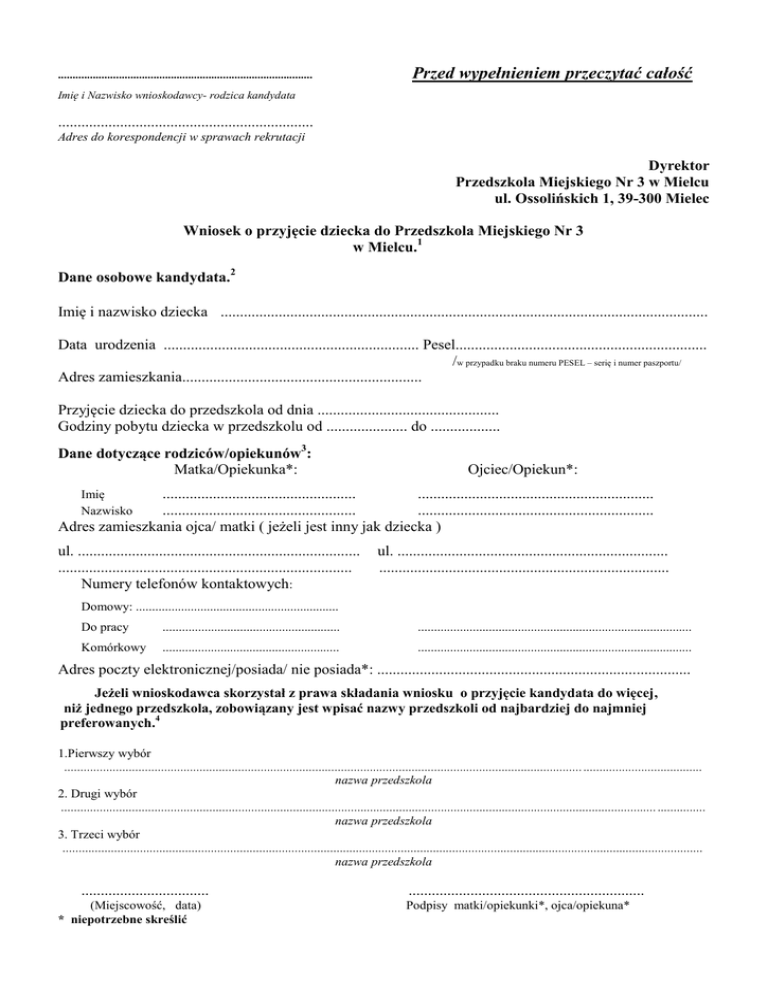 PRZED WYPEŁNIENIEM PRZECZYTAĆ CAŁOŚĆ