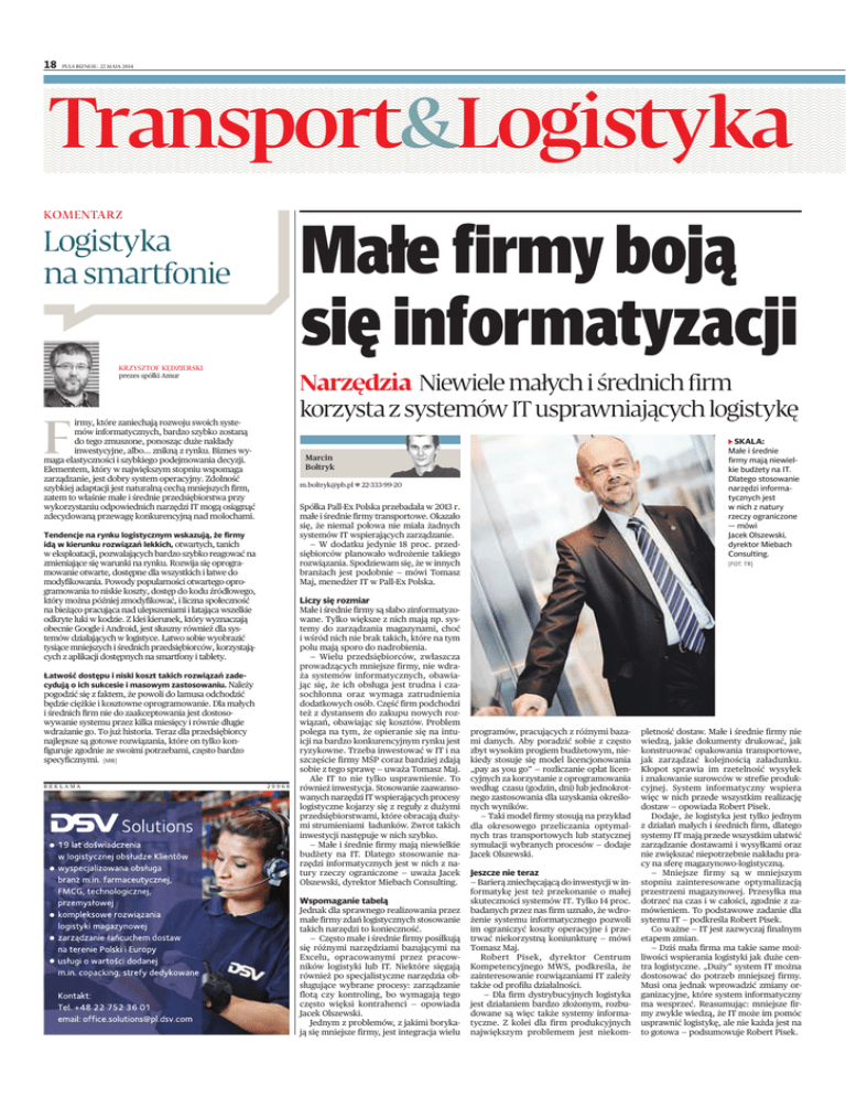18 PULS BIZNESU, 22 MAJA 2014 Transport&Logistyka KOMENTARZ Małe firmy boją się informatyzacji Logistyka na smartfonie KRZYSZTOF KĘDZIERSKI prezes spółki Amur Narzędzia Niewiele małych i średnich firm korzysta z systemów IT usprawniających logistykę F irmy, które zaniechają rozwoju swoich systemów informatycznych, bardzo szybko zostaną do tego zmuszone, ponosząc duże nakłady inwestycyjne, albo… znikną z rynku. Biznes wymaga elastyczności i szybkiego podejmowania decyzji. Elementem, który w największym stopniu wspomaga zarządzanie, jest dobry system operacyjny. Zdolność szybkiej adaptacji jest naturalną cechą mniejszych firm, zatem to właśnie małe i średnie przedsiębiorstwa przy wykorzystaniu odpowiednich narzędzi IT mogą osiągnąć zdecydowaną przewagę konkurencyjną nad molochami. [email protected] 22-333-99-20 Spółka Pall-Ex Polska przebadała w 2013 r. małe i średnie firmy transportowe. Okazało się, że niemal połowa nie miała żadnych systemów IT wspierających zarządzanie. — W dodatku jedynie 18 proc. przedsiębiorców planowało wdrożenie takiego rozwiązania. Spodziewam się, że w innych branżach jest podobnie — mówi Tomasz Maj, menedżer IT w Pall-Ex Polska. Tendencje na rynku logistycznym wskazują, że firmy idą w kierunku rozwiązań lekkich, otwartych, tanich w eksploatacji, pozwalających bardzo szybko reagować na zmieniające się warunki na rynku. Rozwija się oprogramowanie otwarte, dostępne dla wszystkich i łatwe do modyfikowania. Powody popularności otwartego oprogramowania to niskie koszty, dostęp do kodu źródłowego, który można później zmodyfikować, i liczna społeczność na bieżąco pracująca nad ulepszeniami i łatająca wszelkie odkryte luki w kodzie. Z klei kierunek, który wyznaczają obecnie Google i Android, jest słuszny również dla systemów działających w logistyce. Łatwo sobie wyobrazić tysiące mniejszych i średnich przedsiębiorców, korzystających z aplikacji dostępnych na smartfony i tablety. Łatwość dostępu i niski koszt takich rozwiązań zadecydują o ich sukcesie i masowym zastosowaniu. Należy pogodzić się z faktem, że powoli do lamusa odchodzić będzie ciężkie i kosztowne oprogramowanie. Dla małych i średnich firm nie do zaakceptowania jest dostosowywanie systemu przez kilka miesięcy i równie długie wdrażanie go. To już historia. Teraz dla przedsiębiorcy najlepsze są gotowe rozwiązania, które on tylko konfiguruje zgodnie ze swoimi potrzebami, często bardzo specyficznymi. [MIB] REKLAMA SKALA: Małe i średnie firmy mają niewielkie budżety na IT. Dlatego stosowanie narzędzi informatycznych jest w nich z natury rzeczy ograniczone — mówi Jacek Olszewski, dyrektor Miebach Consulting. Marcin Bołtryk 29968 Liczy się rozmiar Małe i średnie firmy są słabo zinformatyzowane. Tylko większe z nich mają np. systemy do zarządzania magazynami, choć i wśród nich nie brak takich, które na tym polu mają sporo do nadrobienia. — Wielu przedsiębiorców, zwłaszcza prowadzących mniejsze firmy, nie wdraża systemów informatycznych, obawiając się, że ich obsługa jest trudna i czasochłonna oraz wymaga zatrudnienia dodatkowych osób. Część firm podchodzi też z dystansem do zakupu nowych rozwiązań, obawiając się kosztów. Problem polega na tym, że opieranie się na intuicji na bardzo konkurencyjnym rynku jest ryzykowne. Trzeba inwestować w IT i na szczęście firmy MŚP coraz bardziej zdają sobie z tego sprawę — uważa Tomasz Maj. Ale IT to nie tylko usprawnienie. To również inwestycja. Stosowanie zaawansowanych narzędzi IT wspierających procesy logistyczne kojarzy się z reguły z dużymi przedsiębiorstwami, które obracają dużymi strumieniami ładunków. Zwrot takich inwestycji następuje w nich szybko. — Małe i średnie firmy mają niewielkie budżety na IT. Dlatego stosowanie narzędzi informatycznych jest w nich z natury rzeczy ograniczone — uważa Jacek Olszewski, dyrektor Miebach Consulting. Wspomaganie tabelą Jednak dla sprawnego realizowania przez małe firmy zdań logistycznych stosowanie takich narzędzi to konieczność. — Często małe i średnie firmy posiłkują się różnymi narzędziami bazującymi na Excelu, opracowanymi przez pracowników logistyki lub IT. Niektóre sięgają również po specjalistyczne narzędzia obsługujące wybrane procesy: zarządzanie flotą czy kontroling, bo wymagają tego często więksi kontrahenci — opowiada Jacek Olszewski. Jednym z problemów, z jakimi borykają się mniejsze firmy, jest integracja wielu [FOT. TR] programów, pracujących z różnymi bazami danych. Aby poradzić sobie z często zbyt wysokim progiem budżetowym, niekiedy stosuje się model licencjonowania „pay as you go” — rozliczanie opłat licencyjnych za korzystanie z oprogramowania według czasu (godzin, dni) lub jednokrotnego zastosowania dla uzyskania określonych wyników. — Taki model firmy stosują na przykład dla okresowego przeliczania optymalnych tras transportowych lub statycznej symulacji wybranych procesów — dodaje Jacek Olszewski. Jeszcze nie teraz — Barierą zniechęcającą do inwestycji w informatykę jest też przekonanie o małej skuteczności systemów IT. Tylko 14 proc. badanych przez nas firm uznało, że wdrożenie systemu informatycznego pozwoli im ograniczyć koszty operacyjne i przetrwać niekorzystną koniunkturę — mówi Tomasz Maj. Robert Pisek, dyrektor Centrum Kompetencyjnego MWS, podkreśla, że zainteresowanie rozwiązaniami IT zależy także od profilu działalności. — Dla firm dystrybucyjnych logistyka jest działaniem bardzo złożonym, rozbudowane są więc także systemy informatyczne. Z kolei dla firm produkcyjnych największym problemem jest niekom- pletność dostaw. Małe i średnie firmy nie wiedzą, jakie dokumenty drukować, jak konstruować opakowania transportowe, jak zarządzać kolejnością załadunku. Kłopot sprawia im rzet