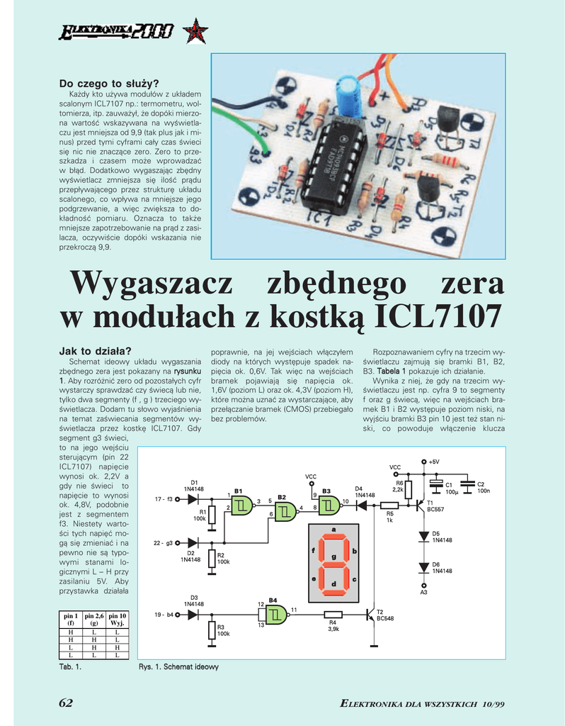 Wygaszacz zbędnego zera w modułach z kostką ICL7107