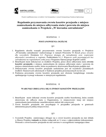 Regulamin przyznawania zwrotu kosztów przejazdu z