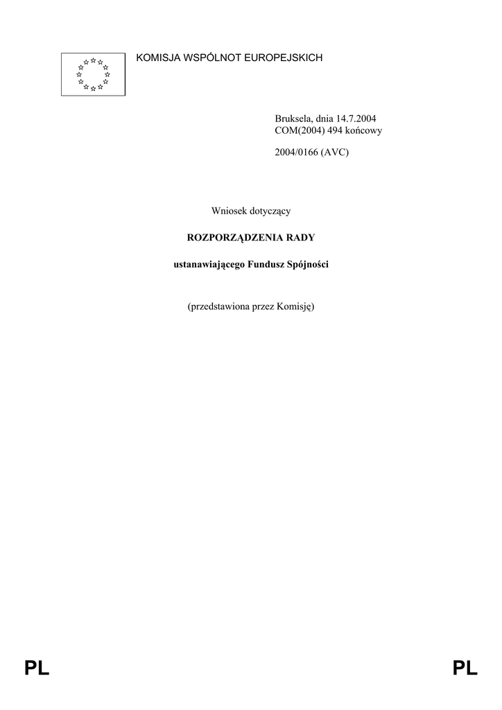 KOMISJA WSPÓLNOT EUROPEJSKICH Bruksela, dnia 14.7.2004 COM(2004) 494 końcowy 2004/0166 (AVC) Wniosek dotyczący ROZPORZĄDZENIA RADY ustanawiającego Fundusz Spójności (przedstawiona przez Komisję) PL PL MOTYWY Artykuł 161 ust. 2 Traktat stanowi, że Fundusz Spójności będzie wspierać finansowo projekty w dziedzinach środowiska naturalnego i sieci transeuropejskich w zakresie infrastruktury transportowej. Rozporządzenie (WE) nr 1164/94 ustanowiło Fundusz Spójności i jako pierwsze określiło ramy jego stosowania. Powyższe rozporządzenie zostało następnie uzupełnione rozporządzeniami (WE) nr 1264/1999 i (WE) nr 1265/99. W wyniku rozszerzenia Unii Europejskiej z dniem 1 maja 2004 r. Fundusz Spójności obejmie, do końca 2006 r., dziesięć nowych Państw Członkowskich, a także trzy Państwa Członkowskie (Hiszpanię, Portugalię, Grecję) będące jego dotychczasowymi beneficjentami, aż do końca okresu 2000-2006. W zakresie okresu programowania na lata 2007-2013, rozporządzenie (WE) nr […] ustala ogólne przepisy dotyczące funkcjonowania Funduszy Strukturalnych i Funduszu Spójności, a także przewiduje, że Fundusz Spójności przyczyni się do osiągnięcia celu konwergencji mniej rozwiniętych Państw Członkowskich i regionów wspierając finansowo programy operacyjne realizowane w tym celu. W ramach reformy systemu wdrażania polityki spójności, określonej w trzecim raporcie o spójności przyjętym przez Komisję w lutym 2004 r., działania Funduszu Spójności zostają włączone w zakres wieloletniego programowania Funduszy Strukturalnych, włączając w nie działania realizowane w ramach wielkich projektów. Wyżej określona reforma, podtrzymując podstawowe zasady stanowiące bazę polityki spójności (programowanie wieloletnie, partnerstwo, ocena, podział zarządzania) opiera się na globalnej równowadze między wzmacnianiem wymiaru strategicznego, a upraszczaniem systemu wdrażania, w szczególności poprzez zmniejszenie liczby Funduszy, uproszczenie programowania, wyraźniejsze określenie roli Państw Członkowskich i Komisji w zakresie zarządzania finansowego i kontroli, a także poprzez przyjęcie zasad wdrażania zależnych między innymi od intensywności wkładu wspólnotowego. W dziedzinie transeuropejskich sieci transportowych działania finansowane przez Fundusz Spójności powinny być zgodne z wytycznymi dotyczącymi tych sieci przyjętymi przez Radę i zawartymi w decyzji (WE) 1692/96 z późniejszymi zmianami. W dziedzinie ochrony środowiska wsparcie Funduszu Spójności przyczynia się do realizacji celów polityki Unii Europejskiej przewidzianych w art. 174 Traktatu. Przystąpienie nowych Państw Członkowskich w dniu 1 maja 2004 r., z których wszystkie są objęte Funduszem Spójności oraz istnienie nowych i ważnych potrzeb finansowania w tych krajach uzasadniają rozszerzenie zakresu wsparcia Funduszu. Tym samym Fundusz Spójności może również finansować działania w dziedzinach, które sprzyjają trwałemu rozwojowi i mają wyraźnie środowiskowy charakter, takich jak efektywność energetyczna i odnawialne źródła energii, a w dziedzinie transportu, oprócz sieci transeuropejskich, żegluga śródlądowa i morska, wielomodalne działania transportowe i ich interoperacyjności, kontrola natężenia ruchu drogowego i lotniczego, czysty transport miejski oraz zbiorcze rodzaje transportu. Powyższe rozszerzenie zakresu wsparcia jest zgodne z odnośnymi postanowieniami Traktatu i pokrywa się z priorytetami przyjętymi podczas posiedzeń Rady Europejskiej w Lizbonie (marzec 2000 r.) i Göteborgu (czerwiec 2001 r.). PL 2 PL Celem niniejszego rozporządzenia jest sprecyzowanie misji Funduszu Spójności i specyficznych warunków jej realizacji, szczególnie w zakresie warunkowego wsparcia i zakresu stosowania Funduszu. Państwa Członkowskie będące beneficjentami Funduszu Spójności powinny dostosować się do warunków określonych w Traktacie i dotyczących programów konwergencji i warunków nadmiernego deficytu budżetowego odnoszących się do Państw Członkowskich, które są członkami unii gospodarczej i walutowej. Wsparcie Funduszu Spójności jest uwarunkowane spełnieniem powyższych warunków. Gdy Rada, na wniosek Komisji, stwierdzi nadmierny deficyt publiczny, a dane Państwo Członkowskie nie podejmie skutecznych działań, zobowiązania Funduszu Spójności zostaną zawieszone od dnia 1 stycznia następnego roku. Zawieszenie zostanie zniesione, gdy Rada stanowiąca w tych samych warunkach stwierdzi, że dane Państwo Członkowskie podjęło środki naprawcze, które pozwolą na powrót do sytuacji zgodnej z Traktatem i z decyzjami Rady. PL 3 PL 2004/0166 (AVC) Wniosek dotyczący ROZPORZĄDZENIA RADY ustanawiającego Fundusz Spójności RADA UNII EUROPEJSKIEJ, uwzględniając Traktat ustanawiający Wspólnotę Europejską, a w szczególności jego art. 161 ust. 2, uwzględniając wniosek Komisji1, uwzględniając zgodę Parlamentu Europejskiego2, uwzględniając opinię Europejskiego Komitetu Ekonomiczno-Społecznego3, uwzględniając opinię Komitetu Regionów4, a także mając na uwadze co następuje: (1) Rozporządzenie (WE) nr […] ustalające przepisy ogólne w sprawie Europejskiego Funduszu Rozwoju Regionalnego, Europejskiego Funduszu Społecznego i Funduszu Spójności5 wprowadza ramy działań Funduszy Strukturalnych i Funduszu Społecznego, poprzez ustalenie celów, zasad i reguł partnerstwa, programowania, oceny i zarządzania. Należy zatem sprecyzować misję Funduszu Spójności w stosunku do tychże nowych ram i w stosunku do misji przydzielonej mu w Traktacie, a także, w trosce o jasność przepisów, zastąpić rozporządzenie Rady (WE) nr 1164/94 z dnia 16 maja 1994 r. ustanawiające Fundusz Spójności6. (2) Projekty finansowane przez Fundusz Spójności w dziedzinie sieci transeuropejskich powinny wpisywać się w wytyczne odnoszące się do tych sieci i przyjęte przez Radę