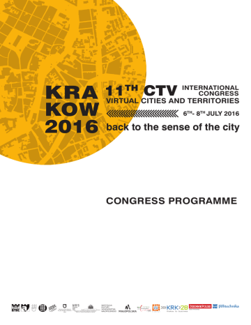 KRA 11 CTV KOW 2016 back to the sense of the city TH INTERNATIONAL CONGRESS VIRTUAL CITIES AND TERRITORIES 6TH- 8TH JULY 2016 CONGRESS PROGRAMME Małopolski Ogród Sztuki funkcjonuje w strukturach Teatru im. Juliusza Słowackiego w Krakowie INSTYTUCJA KULTURY WOJEWÓDZTWA MAŁOPOLSKIEGO MEDIA PATRONAGE 11TH CTV INTERNATIONAL CONGRESS KRAKOW 2016 HONORARY PATRONAGE Rector of the Cracow University of Technology PROF. D.SC. PHD. ENG. KAZIMIERZ FURTAK Rector of the Jan Matejko Academy of Fine Arts in Cracow PROF. STANISŁAW TABISZ President of the Committee of Architecture and Urbanism Polish Academy of Sciences PROF. D.SC. PHD. ENG. ARCH. SŁAWOMIR GZELL Head of the Division of Urbanism, Committee of Architecture and Urbanism Polish Academy of Sciences Dean of The Faculty of Architecture, Cracow University of Technology PROF. D.SC. PHD. ENG. ARCH. JACEK GYURKOVICH Vice-Rector for Research of the Cracow University of Technology PROF., D.SC. PHD. ENG. JAN KAZIOR Vice-Rector for Education and International Affairs of the Cracow University of Technology PROF., D.SC. PHD. ENG. DARIUSZ BOGDAŁ President of the Cracow Branch of the Society of Polish Town Planners PROF. D.SC. PHD. ENG. ARCH. BARBARA BARTKOWICZ Mayor of City of Krakow PROF. JACEK MAJCHROWSKI Mayor of Nowy Sącz RYSZARD NOWAK Mayor of Oświęcim JANUSZ CHWIERUT Mayor of Krynica-Zdroj PHD. DARIUSZ REŚKO Mayor of Jordanów IWONA BILSKA Mayor of City and Community of Szczucin ANDRZEJ GORZKOWICZ 2 ///// DAY 1 6 TH JULY wednesday 10.00 - 10.30 Registration And Coffee Faculty of Architecture / Podchorążych 1 / 2nd floor 10.30 - 12.15 OPENING CEREMONY Faculty of Architecture / Podchorążych 1 / Auditorium W2 10.30 - 11.00 Opening speeches Prof. Josep Roca Cladera, President of the 11thCTV Congress Scientific Committee Faculty of Architecture, Cracow University of Technology (Poland) Special Guest of the Congress Prof. Nikos A. Salingaros Eight City Types And Their Interactions 11.00 - 11.45 CPSV, Universitat Politecnica de Catalunya, (Spain) Assoc. Prof. Anna Agata Kantarek, Congress Curator University of Texas at San Antonio (USA) 11.45 - 12.15 Opening of Congress accompanying exhibitions Coffee break 12.15 - 17.15 1ST PLENARY SESSION / INTRODUCTION Faculty of Architecture / Podchorążych 1 / Auditorium W2 12.15 - 12.30 Introduction to the Debate Assoc. Prof. Anna Franta, Congress Curator Faculty of Architecture Cracow University of Technology (Poland) Key Speakers Prof. Ivor Samuels Prof. Ameen Farooq 12.30 - 14.15 ISUF International Seminar on Urban Form; Urban Morphology Research Group, University of Birmingham (UK) College of Architecture and Construction Management Kennesaw State University (USA) 14.15 - 15.15 Lunch break 15.15 - 17.15 Key Speakers Prof. Estanislao Roca Prof. Mario Cerasoli Prof. Sławomir Gzell Departamento de Urbanismo y Ordenación del Territorio DUOT , Universitat Politecnica de Catalunya, (Spain) Department of Architecture, University Roma Tre (Italy) Faculty of Architecture, Warsaw University of Technology (Poland) 17.15 - 17.30 Coffee break 17.30 - 19.30 1ST Session in the Interdisciplinary Problem Panels Faculty of Architecture / Podchorążych 1 For details see next page 20.30 INTEGRATION AND DISCUSSION EVENING Małopolski Garden of Art / Rajska 12 / Main Hall / Café Opening of the Main Congress Exhibition ///// 3 DAY 1 6 TH JULY wednesday PANEL GUIDE PANEL 1 The contemporary sense of polis – if and how? Moderators: Prof. Nikos A. Salingaros, Prof. Mario Cerasoli, Assoc. Prof. Anna Agata Kantarek, secretary: PhD. Marta A. Urbańska Declared Participants: D.Sc. Tomasz Kozłowski, PhD. Krzysztof Kwiatkowski, PhD. Ernestyna Szpakowska-Loranc, PhD. Anna Mielnik, PhD. Maciej Skaza, PhD. Mariusz Twardowski, PANEL 2 How built up and nature dimension balance effect the quality of cities? Moderators: Prof. Karin Hofert Feix, D.Sc. Maciej Motak, Assoc. Prof. Artur Jasiński secretary: PhD. Miłosz Zieliński Declared Participants: Prof. Grażyna Schneider-Skalska, PhD. Magdalena Rzeszotarska-Pałka, PhD. Magdalena Czałczyńska-Podolska, PhD. Marcos Ros Sempere, Dr. Jesus Gaston Gutierrez Cedillo, PhD. Agnieszka Matusik, PANEL 3 Urban composition – desired, possible, required? Moderators: Prof. Nina Juzwa, Assoc.Prof. Carlos Marmolejo Duarte, D.Sc. Mateusz Gyurkovich, secretary: PhD. Bartłomiej Homiński Declared Participants: Assoc. Prof. Teresa Bardzińska-Bonenberg, Assoc. Prof. Katarzyna Pluta, Dr Victor Martinez, PhD. Monika Cysek-Pawlak, M.Sc. Maher Summan, PhD. Przemysław Bigaj, PhD. Felipe Encinas, M.Ing. Carlos Aguirre PANEL 4 Will contemporary cultures expressiveness help to bring the sense of the city back? Moderators: Assoc Prof. Grzegorz Biliński, Assoc. Prof. Alicja Duzel-Bilińska, D.Sc. Małgorzata Mizia, secretary: PhD. Piotr Celewicz Declared Participants: Assoc. Prof. Jan Wrana, PhD. Roman Czajka, PhD. Andrzej Sobolewski, PhD. Natalia Regimowicz, PhD. Beata Malinowska-Petelenz, PANEL 5 Primum non nocere ? Importance of responsibility for urban / architectural values Moderators: Prof. Ameen Farooq, Assoc. Prof. Anna Franta, PhD. Edyta Barucka, secretary: M.Sc. Eliza Szczerek Declared Participants: 4 ///// Prof. Andrzej Kadłuczka, Prof. Kazimierz Kuśnierz, Prof. Wojciech Kosiński, Prof. Zbigniew Paszkowski, D. Sc. Hubert Mełges, D.Sc. Dominika Kuśnierz-Krupa, M.Sc. J. Franta, DAY 1 6 TH JULY wednesday PANEL GUIDE PANEL 6 Could urban growth be sustainable? Moderators: Prof. Wojciech Bonenberg, PhD. Blanca Arellano Ramos, PhD. Pascal Simoens, secretary: PhD. Kinga Racoń-Leja Declared Participants: PANEL 7 City smartness – tool or aim? Moderators: Prof. José António Tenedório, Assoc. Prof. Andrzej Szarata, D.Sc. Krzysztof Bojanowski, secretary: M. Arch. Rolando Biere Arenas, Declared Participants: PANEL 8 Prof. Rosanna Estanqueiro, Assoc. Prof. Sabina Kuc, S.T. Luis Marques, Dr Pablo Marti Ciriquian, PhD. Przemysław Markiewicz, M.Sc. Bianca Chavez Custodio, M.Sc. Karolina Studenck