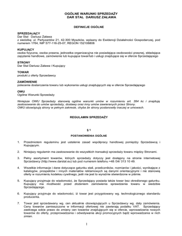 OGÓLNE WARUNKI SPRZEDAŻY DAR STAL DARIUSZ ZAŁAWA