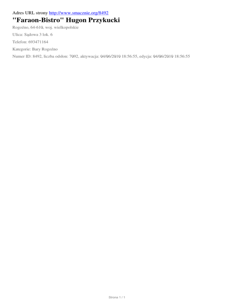 "Faraon-Bistro" Hugon Przykucki, Rogozno, Sadowa