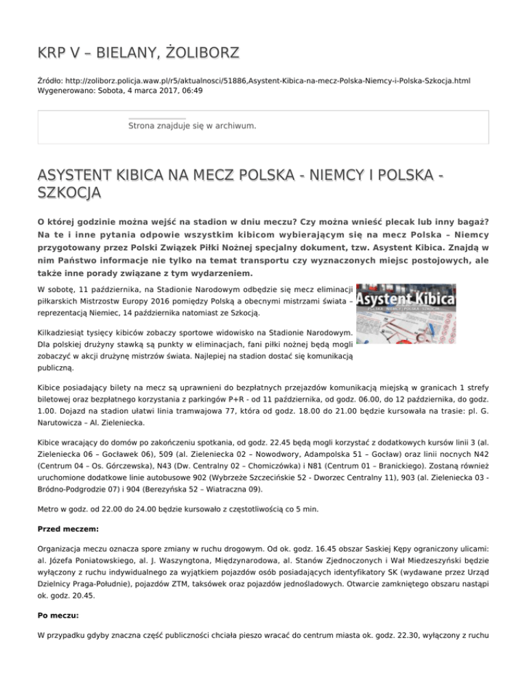 KRP V – BIELANY, ŻOLIBORZ ASYSTENT KIBICA NA MECZ