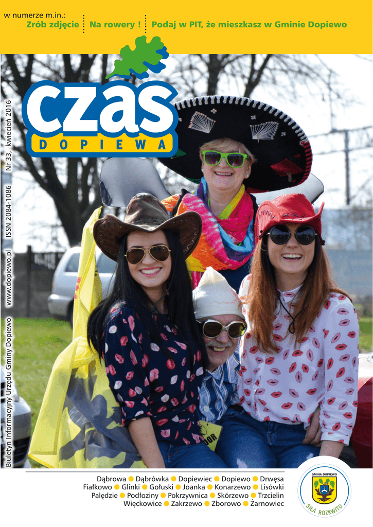Na rowery ! Podaj w PIT, że mieszkasz w Gminie Dopiewo Biuletyn Informacyjny Urzędu Gminy Dopiewo www.dopiewo.pl ISSN 2084-1086 Nr 33, kwiecień 2016 Zrób zdjęcie ....... ....... w numerze m.in.: Dąbrowa Dąbrówka Dopiewiec Dopiewo Drwęsa Fiałkowo Glinki Gołuski Joanka Konarzewo Lisówki Palędzie Podłoziny Pokrzywnica Skórzewo Trzcielin Więckowice Zakrzewo Zborowo Żarnowiec informacje gminne Przyszła wiosna? Kwiecień jest Miesiącem Pamięci Narodowej. Stwierdzenie to kieruje nas najczęściej myślą w czasy II wojny światowej. Dlaczego kwiecień? W kwietniu 1943 r. Niemcy ogłosili odkrycie „grobów katyńskich” wypełnionych ciałami ok. 22 tys. Polaków, w tym 11 tys. polskich oficerów, którzy ponieśli śmierć od strzału w tył głowy z rąk funkcjonariuszy radzieckiej policji politycznej - NKWD. Znalezione przy szczątkach zapiski, notatki, niedokończone listy urywały się w kwietniu 1940 r. 70 lat później - 10 kwietnia 2010r. - samolot z Prezydentem RP i 95 innymi osobami na pokładzie, lecącymi na obchody rocznicowe tejże „zbrodni katyńskiej”, rozbił się podczas schodzenia do lądowania we mgle. Wydarzenie to zapisało się w pamięci narodowej jako „katastrofa smoleńska” i powraca w dyskusjach publicznych ze śmiałymi i zaangażowanymi politycznie tezami, wypierając z dyskursu zdarzenia oddalone w czasie, o których warto wskrzeszać wspomnienia. Miejscem z historią , o którym jako mieszkańcy Gminy Dopiewo powinniśmy pamiętać są mogiły zbiorowe w lasach palędzko – zakrzewskich, w których leży do kilkunastu tysięcy Wielkopolan pomordowanych przez Niemców w czasach II wojny światowej. Warto wybrać się na spacer, przejażdżkę rowerem „Szlakiem Pamięci”, o którym informacje można znaleźć na stronie: dopiewo.pl Im historie bardziej odległe w czasie lub od głównego nurtu dyskusji i wspomnień, tym częściej – w ciszy przegrywają „walkę” o naszą pamięć. Chyba że trafia nam się okrągły jubileusz, jak choćby 1050-lecie Chrztu Polski, obchodzone w kwietniu tego roku. Inna sprawa, że chcemy pamiętać o tym co wzniosłe i przymykać oko na słabości naszych bohaterów. Chrzest Polski miał z pewnością wymiar państwotwórczy, religijny i polityczny, ale warto wiedzieć, że w czasach pogańskich – zanim książę uległ urokowi czeskiej księżniczki Dobrawy i ją poślubił – miał jednocześnie 7 „żon” , prawie jak turecki sułtan Sulejman Wielki, którego historię - człowieka „z krwi i kości” - tak licznie i namiętnie śledzą polscy telewidzowie „Wspaniałego Stulecia”. Maj rozpoczną ważne święta: 1 maja 2004 r. , w dniu Święta Pracy, miało miejsce przystąpienie Polski do Unii Europejskiej, 2 maja przypada Dzień Flagi Rzeczypospolitej Polskiej (warto wywiesić flagę), a po nim - Święto Konstytucji 3. Maja. To ostatnie podkreśla 225-letnią tradycję polskiego konstytucjonalizmu. W kontekście zawirowań ostatnich miesięcy warto o nim pamiętać. 2 Wpisz to w PIT i bądź GIT Niebawem każdy z nas wypełni i złoży w Urzędzie Skarbowym dek larację podatkową. Nie bez znaczenia jest to, jaki adres zamieszkania w piszemy w formularz PIT. Warto zadbać o to, by było to miejsce, w którym fakt ycznie mieszkamy, nawet jeśli zameldowani jesteśmy gdzieś indziej i nie możemy zmienić meldunku. Dlaczego? Bo gra toczy się o miliony, które mogą wzmocnić budżet tej Gminy, w której mieszkamy, o poprawę komfortu życia obok nas, a o to przecież wszystkim nam tak naprawdę chodzi. Szacujemy, że nadal w Gminie Dopiewo jest ok 2 tys. osób dorosłych, które mieszkają na jej terenie, a ani nie są w niej ani zameldowane na stałe, ani nie podają prawidłowej informacji o miejscu faktycznego zamieszkania. Ich podatki są wykorzystywane gdzieś indziej. Mamy nadzieję, że to się w tym roku zmieni. Prosty przykład: Mieszkaniec, który zarabia rocznie 50 tys. zł brutto, płaci PIT w wysokości 4400 zł. Z tej kwoty do budżetu gminnego tej Gminy, którą podaje jako miejsce zamieszkania w PIT, trafia 1760 zł. Pomnóżmy tę kwotę przez 2 tys. i otrzymujemy 3,5 mln zł. Niewiarygodne? Być może, lecz prawdziwe. Warto więc przyłożyć się i wpisać adres w PIT. Urząd Gminy Dopiewo zachęca mieszkańców, by tak robili, hasłem „Mieszkasz w Gminie Dopiewo – to hit! Wpisz to w PIT i bądź git! AM 1 kwietnia 2016 r. minęło 19 lat obowiązywania obecnej Konstytucji RP. TymCzasem Adam Mendrala, Redaktor Naczelny, Kierownik Referatu Promocji i Rozwoju Gminy Biuletyn Informacyjny Urzędu Gminy Dopiewo Wydawca, redakcja: Urząd Gminy Dopiewo, ul. Leśna 1c Tel. 61 814 83 31 w. promocja [email protected] Redaktor Naczelny: Adam Mendrala Materiały redakcyjne przyjmujemy w redakcji w godzinach pracy Urzędu Gminy w Dopiewie, pocztą tradycyjną i elektroniczną: czas@dopiewo. pl. Zastrzegamy sobie prawo do skracania i adiustacji nadesłanych tekstów i listów. Skład, druk i reklama: Drukarnia Projekt S.C. 63-200 Jarocin, ul. Kusocińskiego 12 tel. 62 747 14 09 [email protected] Kolportaż: Urząd Gminy Dopiewo Za treść reklam i ogłoszeń nie odpowiadamy. Nakład: 7000 egz. Prawa autorskie: Urząd Gminy Dopiewo Wszelkie prawa zastrzeżone. kwiecień 2016 Wójt - felieton Zebraliśmy się Minęły Święta. W okresie około świątecznym miałem przyjemność wziąć udział w licznych „Śniadaniach Wielkanocnych”, czyniąc razem z Państwem zadość tradycji. Mam też za sobą spotkania z mieszkańcami - w Wielką Środę zakończył się cykl zebrań wiejskich, które odbyły się w każdym z 11 Sołectw. Spotkania te zawsze są okazją do wymiany informacji. Tym spośród Was, którzy wzięli w nich udział chciałbym serdecznie podziękować. Na zebraniach starałem się podać wszystkim Państwu najważniejsze informacje dotyczące stanu naszej Gminy - spraw ogólnych , jak i dotyczących Sołectw, czyli spraw dla Was najistotniejszych. Pod