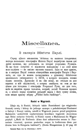JMisoellanea. З п ап ер ів ЗК еґоти П аулї. Серед цілого множества “ нотаток та записок історичних нестора польських етноїрафів Жеїоти Паулї подибуємо також дві дрібні записки, що дотикають ся істориї угорських Русинів. На що були потрібні ті відомости помершому і до якої цїли мали служити — не вміємо напевно сказати. Здає ся нам одначе, що в замірах П аулї лежала обширнїйша моноїрафія Татрів і Карпатів, як про те можна догадуватись з рукопису бібліотеки краківського унїверзитету ч. 5 3 7 3 , з котрого походить низше подана записка. Друкуємо її на сім місці, не стільки за для поданих в ній відомостей, з котрих знайдеть ся теж де що цікаве для історика і етноїрафа Угорської Руси, як для того, щоби не марніла праця чоловіка, котрий, хотяй Поляком вродив ся, з цілого серця полюбив руський нарід і його сумну пісню, коли видав красну збірку „P ieśn i lu d u ru s k ie g o “ . Rusini w Węgrzech. Zdaje się, iż Rusini, których także Rusniakami (po więgiersku Oroszok) zowią i którzy do jednego szczepu z południowym i Rusinam i w Galicyi i Rossyi należą, osiedli w W ęgrzech jeszcze przed przyjściem Madziarów,' aczkolwiek najdawniejszy kronikarz węgierski A nonim us regis Belae notarius twierdzi, iż Rusini razem z Madziarami do W ęgier przybyli („Multi de Ruthenis Almo duci adhaerentes secum in Pannoniam venerunt, quorum posteritas usque in hodiernum diem per diversa loca in Hungaria habitant"). (Gęsta Hungarorum §. 10 pag. 12 Занхскя Наук. тов. їм. Ш евченка т. XXVI. 1 2 MI SCELLANEA ар. Endlicher, Monumenta Arpadiana S. Galii 1849h Tenże kronikarz twierdzi, że książę Zoitan osadzii R usinów na pograniczu Niem iec, gdzie w komitacie wizelburskim zbudowali zamek Oroszvar (Karlburg): „Dux Zolta fixit metas regni Hungariae ex parte Theutonicorum usque ad pontem Guncil (Czillendorf nad Leythą) et in eisdem partibus dedit castrum construere R uthenis, qui cum Almo duce avo suo in Pannoniam venerant, et in eodem confinio ultra lutum Musun (Hansag) collocavit etiam R issen os“ (t. j. Pieczyngów — pag. 53). Około r. 1110 miał Koloman, król węgierski, w ezw ać z W łodzimierza (Lodomierza) i Halicza nowych osadników ruskich, których osadził w mieście Orossfalva (dziś Nagy-Oroszi) w neogradskim komitacie.. (Istvanfy, Histor. Lib. XVI). Z tegoż czasu zdają się również pochodzić ruskie k olon ie: Oroszlamos, Nagy- i Kis- Oroszi w torontalskim, Oroszi w sümeghskim, Oroszi w weszprimskim, Oroszlo w baranyeńskim komitacie. Podług Chronica Hungarorum ed. Varsar, za czasów JStefana św. około r. 10<0 miasteczko Sóovar (castrum Salis) było granicą pomiędzy posiadłościami polskiemi, ruskiemi i madziarskiemi. Że Rusini przed XIII wiekiem w Węgrzech mieszkali, świadczy przywilej z r. 1254 wspominający mogiły ruskie (sepulchra Ruthenorum ) nad rzeką Laborczą w zemplińskiem. Pom iędzy Rusinam i węgierskimi krąży podanie, iż król Andrzej I ukrywał się pomiędzy Rusinami w komitatach Ungh i Bereh (około r. 1046— 10 i 1) i dotąd pokazują dwie m ogiły (carski hribky), gdzie jego dwaj synow ie mają być pochowani. Mylne jest przeto podanie, jakoby książę Teodor Koriatowicz R usinów dopiero w XIV wieku w W ęgrzech osadził1). Tyle w tern tylko prawdy, iż książę Teodor Koriatowicz r. 1354 zawarł w Bracławiu układ z Ludwikiem królem węgierskim i polskim, m ocą którego ustąpił sw ego prawa do Podola Ludwikowi, który mu za to Munkacz odstąpił; albowiem czuł się zbyt słabym, aby odzyskał odebrane mu Podole (Engel, Geschichte von Halicz und Wladimir, Wien 1792. II Bd. p. 54). Z Koriatowiczem przybyło wiele ruskich bojarów do W ęgier. Dyplomata węgierskie wspom inają jeszcze r. 1415 „familiaris condam Theodori ducis Po*) W edług zapiski dochowanej w archiwum Munkaczowskiego monastcru kniaź Teodor Koriatowicz, wprzód wojewoda nowgorodski, odstąpiwszy Podole stryjowi sw em u Olgerdowi, udał się'r. 1339 do Węgier, gdzie mu król Karol l nadał księstwo Munkaczowskie w Beregskiej stolicy sięgające od Uga do Huśta i Maramoroszu. Tu zbudo wał Teodor r. 1339 zamek Munkaczowski, a r. 1360 d. 8 Marca monaster św. Mikołaja, gdzie był wyrzeźbiony herb jego: rycerz zabija jący kopią smoka. MI SCELLANEA З doliae, possesionem Csetfalva depraedans“ і r. 1416 „Ondrej Paii de Kafla dworzanin Koriatowicza posiadający Fekee-Ardó w komitacie Ugocsa“. W edtug podania założył Koryatowicz Komloska (w komitacie Alhanj), Behero (w kom. S a r o s\ kościół w Hegyallya i cerkiew w Makowitzy (kom. Saros). Na Spiżu byli już Rusini w XV wieku, albowiem na belce w cerkwi Poraes był ruski napis z r. 1420. Najm ożniejszą z familii ruskich w W ęgrzech byli Csandar de Olnod (Onód), którzy w XV wieku posiadali Makowicę, Setropko i Tokaj i którzy r. 1470 wymarli. W komitacie marmaroskim posiadali Rusini tak zwane wsie wołoskie (villae vlahales), a w bereghskim mieli 10 wsi, r. 1496 mieli osobnych sędziów (kniaziów), którzy w łasnego obierali w ojew odę (Karol Meszäros, A Magyarorszägi oroszok t. j. węgierscy Rusini, Pesth, 1850, bey Gustaw Emich, pag. 149— 166). Jeszcze r. 1628 osadził dziedzic Jan Bajori w Zedlicze koło Orosz-Peklin (czyli H erdegenshay) kolonię Rusina z Polski (w komit. Säros); a nawet w