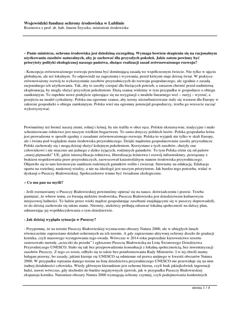 Rozmowa z prof. dr. hab. Janem Szyszko, ministrem środowiska